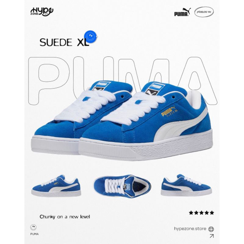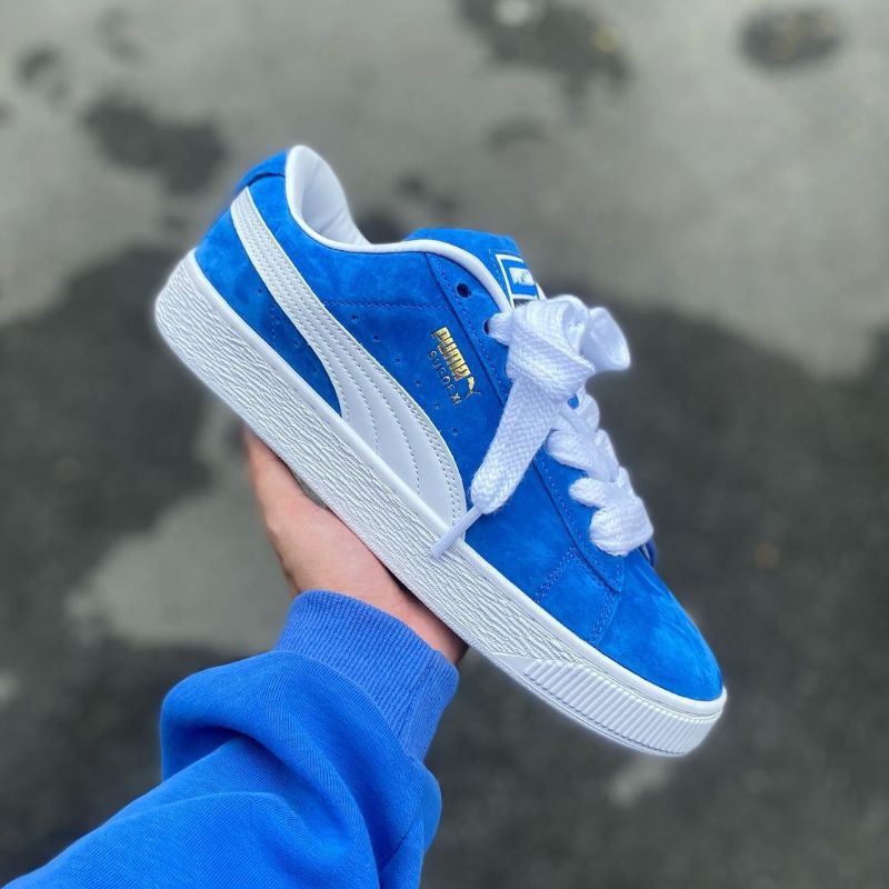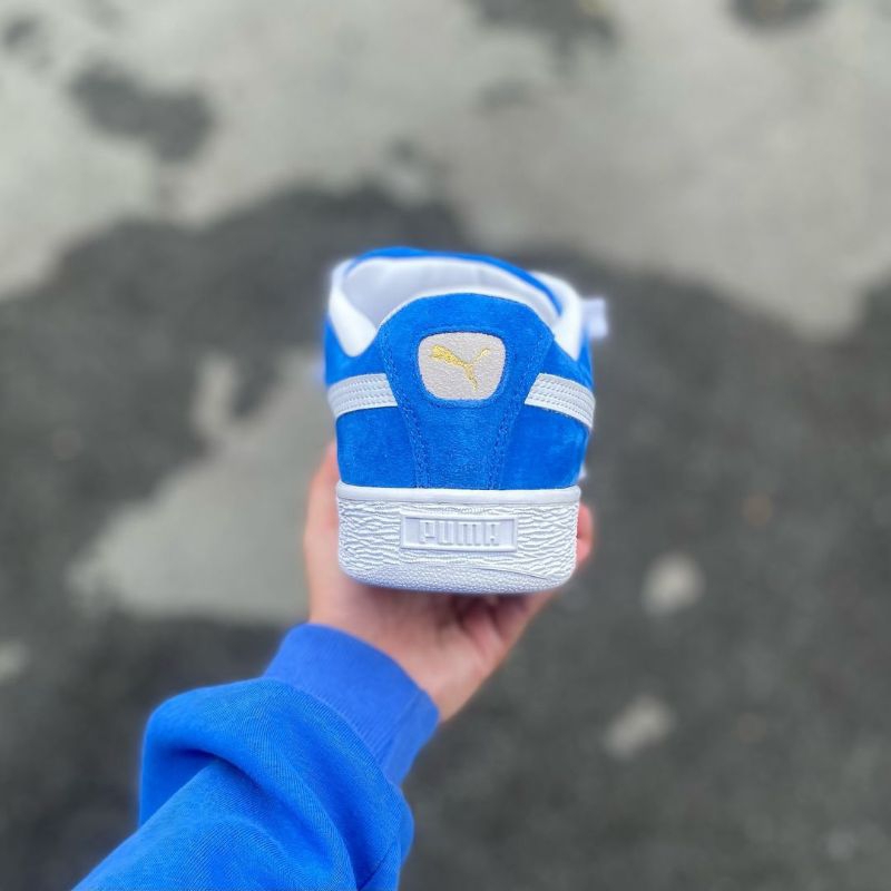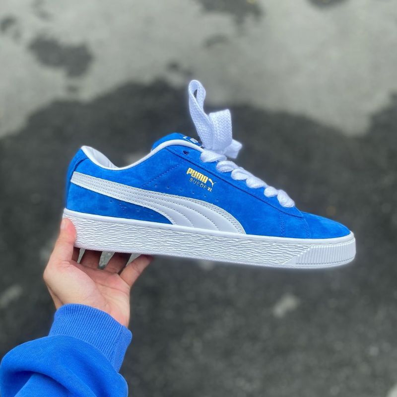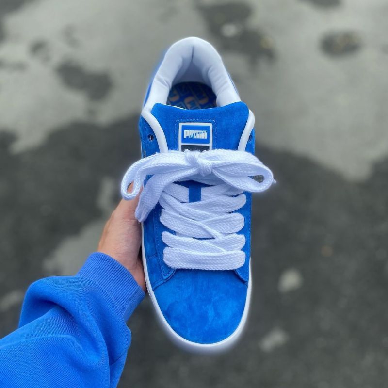 SEPATU SNEAKERS SUEDE XL WARNA BIRU CERAH BCA MODEL TALI GEMUK GENDUT TERBARU SOLE KARET PUTIH