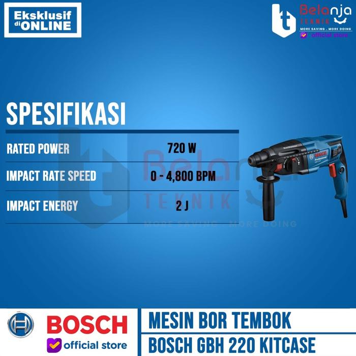 Bosch Mesin Bor Tembok Rotary Hammer Drill GBH 220 22MM Kit Case 6 ACC