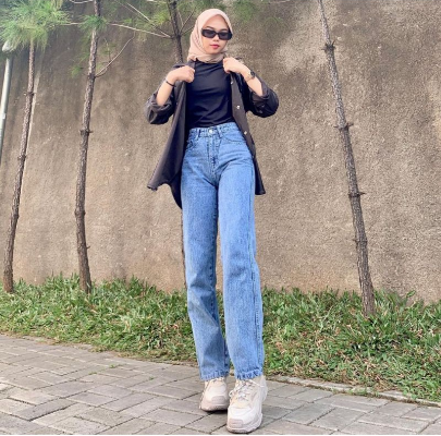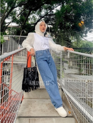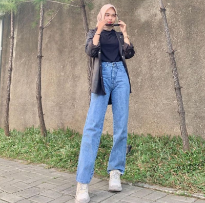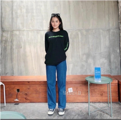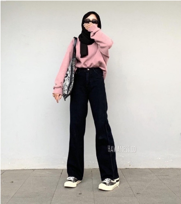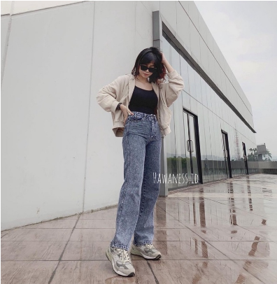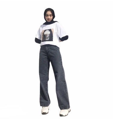 Highwaist Kulot Jeans Wanita Loose