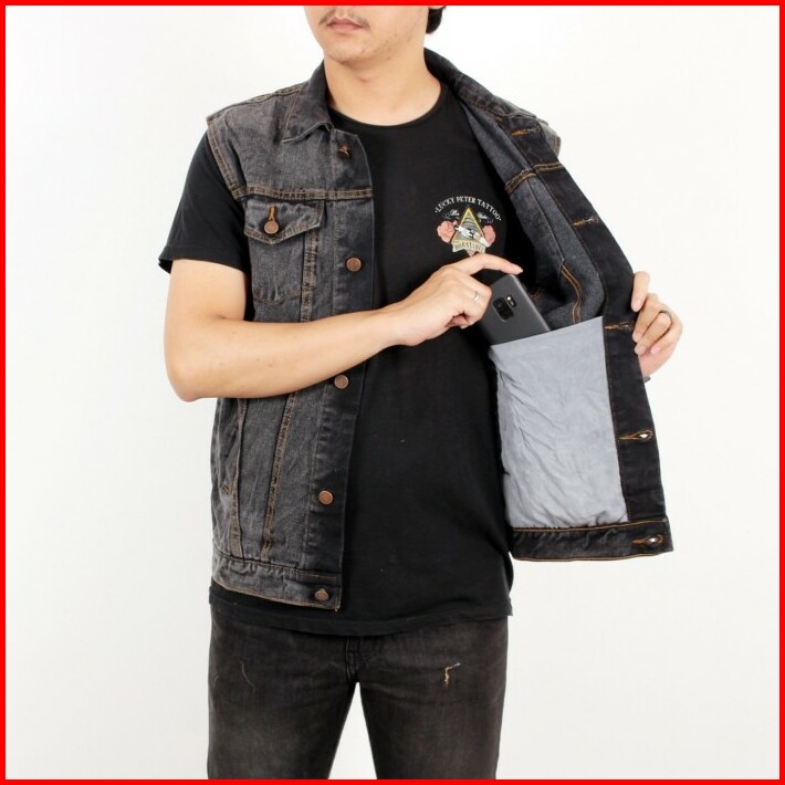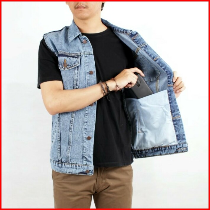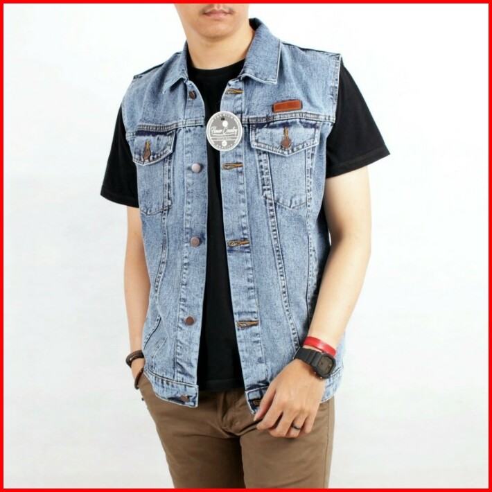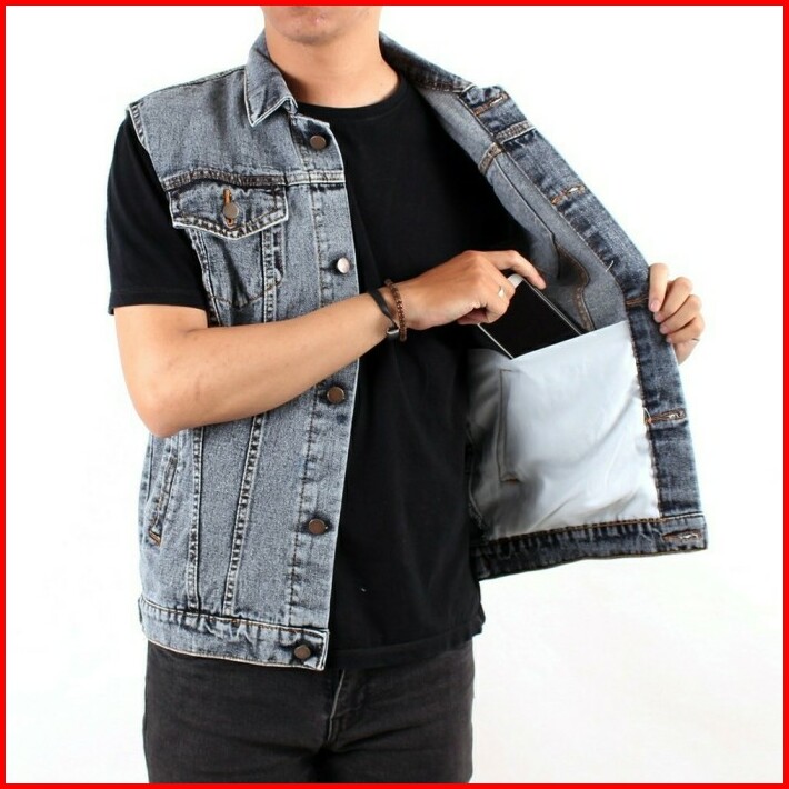 Jaket Rompi Jeans Pria Vest Jacket Denim Blue Grey Original M L Xl