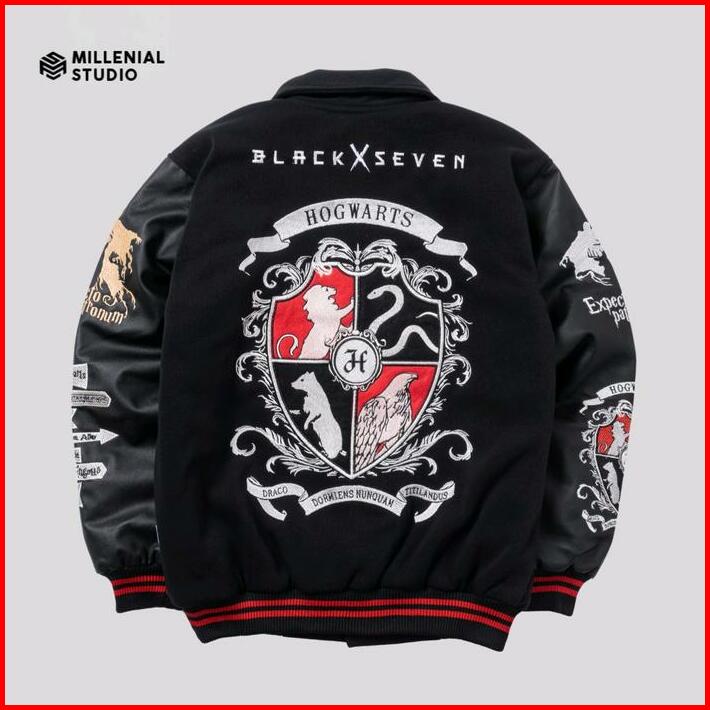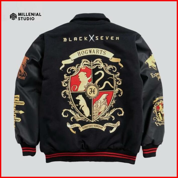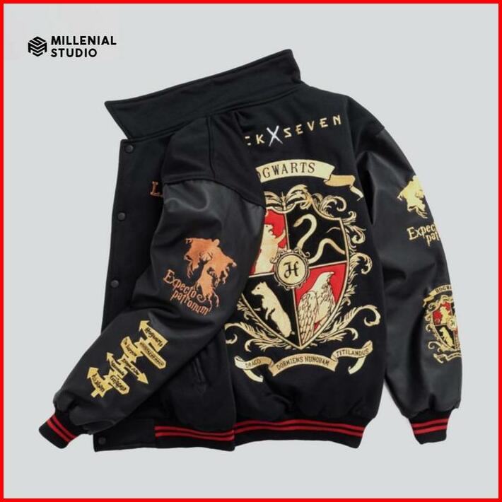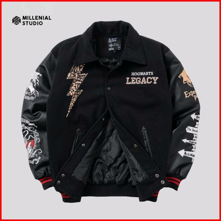 Varsity Jacket Hogwarts Legacy V2 Harry Potter Hitam Jaket Baseball Bordir Original Unisex Leather Fleece Nyaman Pria