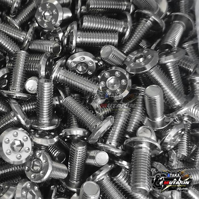 DP 0 ATAKA TITANIUM BAUT DISC BAUT PIRINGAN CAKRAM KALIPER BAUT 220MM 260MM 300MM (DRAT 122CM) UNIVERSAL HONDA YAMAHA KAWASAKI SUZUKI 1 BUAT TITANIUM