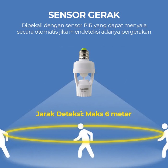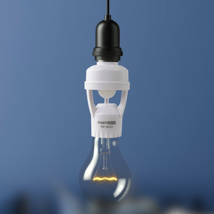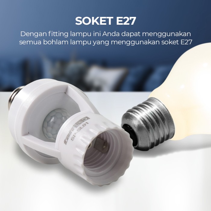 TANPA DP SMART FITTING E27 LAMPU BOHLAM MOTION SENSOR GERAK OTOMATIS TAFFLED AC 220V KABEL