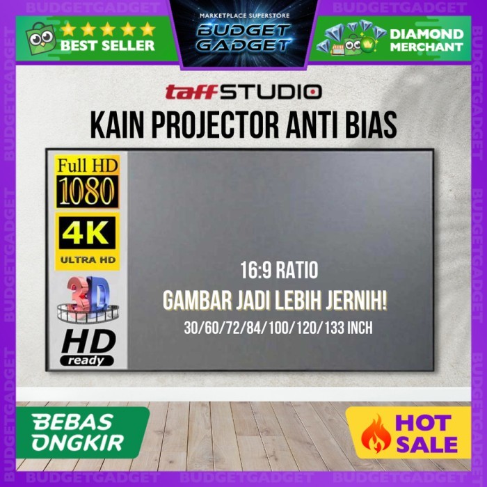 TANPA DP TAFFSTUDIO KAIN LAYAR PROYEKTOR ANTI LIGHT SCREEN CURTAIN LEJIADA L21 72 INCH