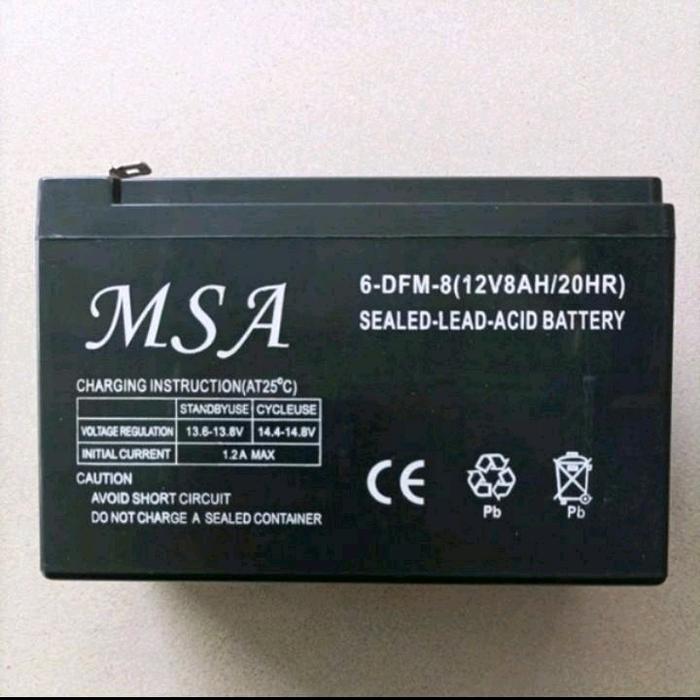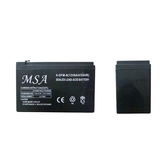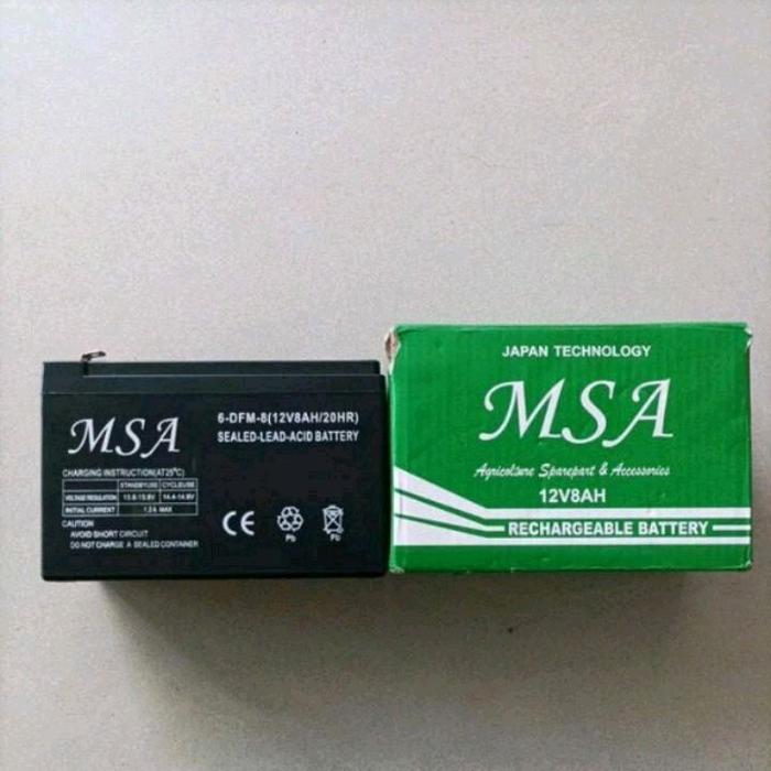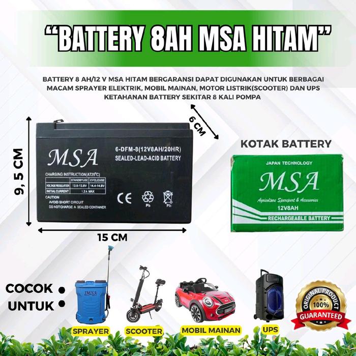 TANPA DP BATTERY 8AH MSA HITAM ( AKI BATERAI BATRE ACCU SPRAYER ELEKTRIK 12V 8AH MSA HITAM UPS BERGARANSI) CHARGER HIJAU PUTIH