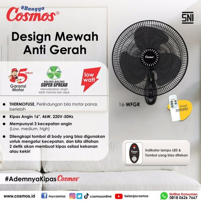 DP 0 COSMOS KIPAS ANGIN TEMBOK REMOTE CONTROL 16 INCH WALL FAN DINDING HITAM