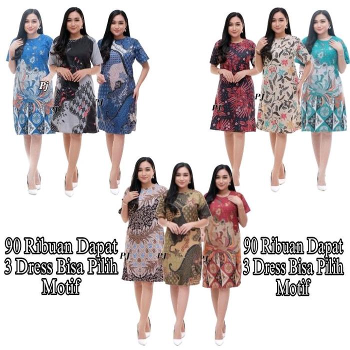 TANPA DP PAKET HEMAT 90 RIBUAN DAPAT 3 DRESS BISA PILIH MOTIF CASUAL BATIK BIRU HIJAU WANITA PENDEK PANJANG BAJU CANTIK 3 DRES BATIK M