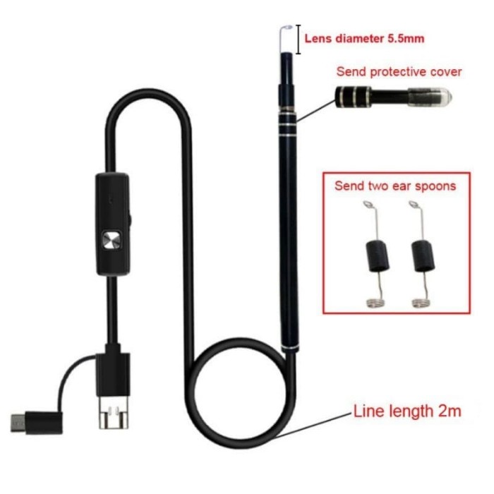 TANPA DP 3 IN 1 KAMERA PEMBERSIH TELINGA WIRELESS ENDOSCOPE HD USB LED DNEC01