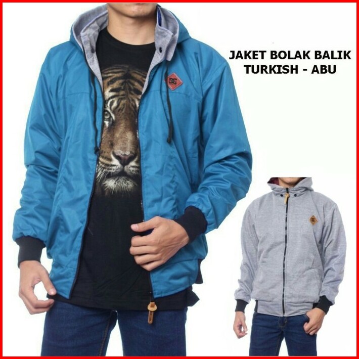 Jaket Bolak Balik Pria Bb 2in1 Parasut Anti Air Fleece Size M L Xl