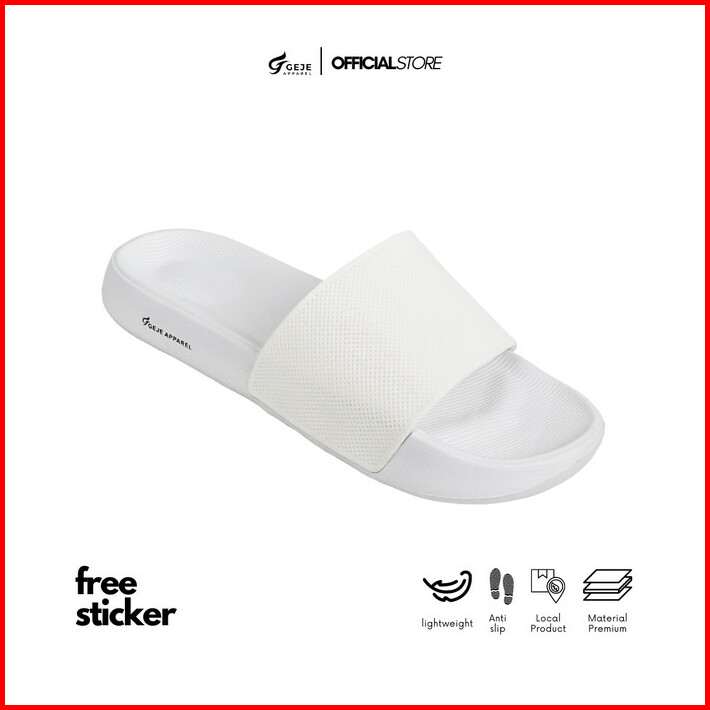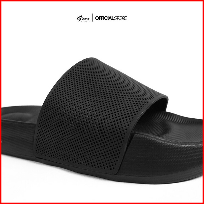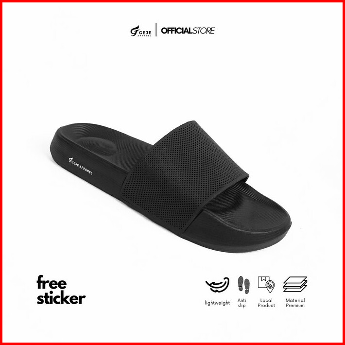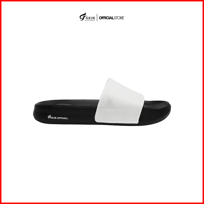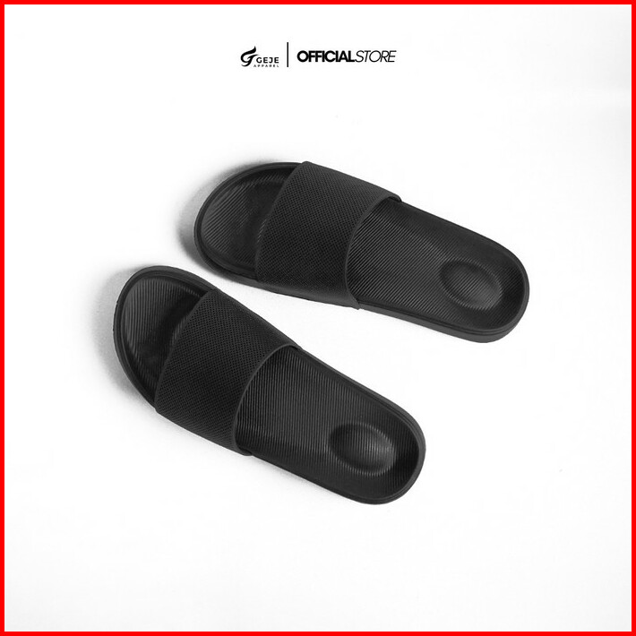 Geje Apparel Sandal Slop Karet Hitam Putih Sendal Pria Wanita Upperlock Tanpa Lem Anti Licin Vector