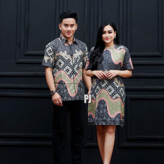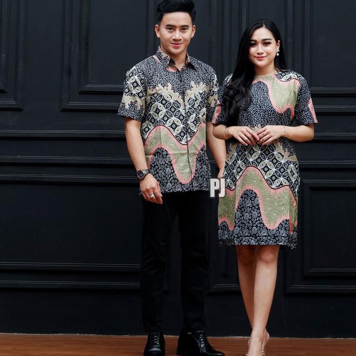 TANPA DP BAJU PASANGAN LENGAN PENDEK WANITA DARI POLIKATUN COUPLE BATIK DRESS SARIMBIT SERAGAM ATASAN KONDANGAN COUPLE OMBAK PRIA M WANITA M