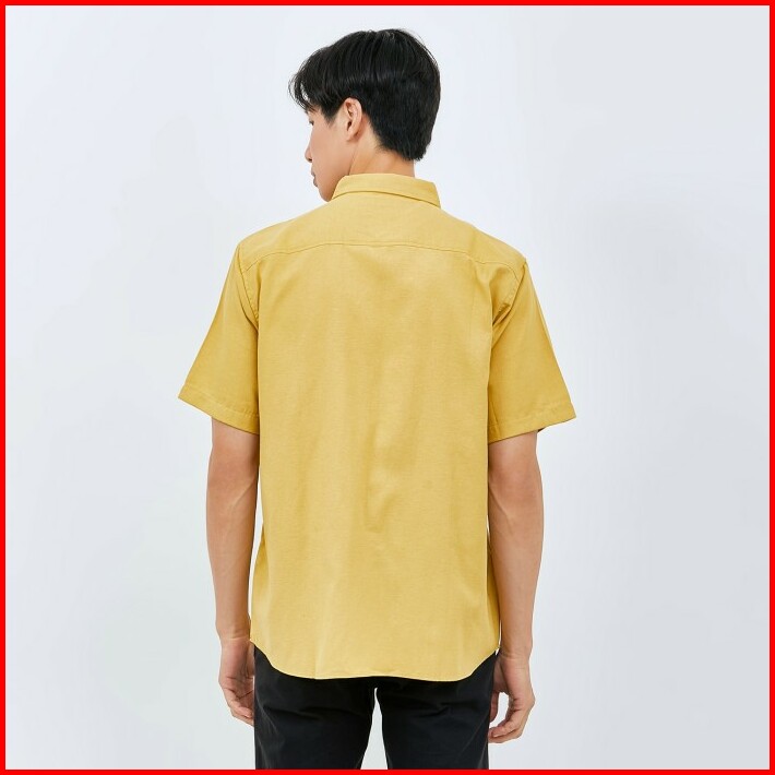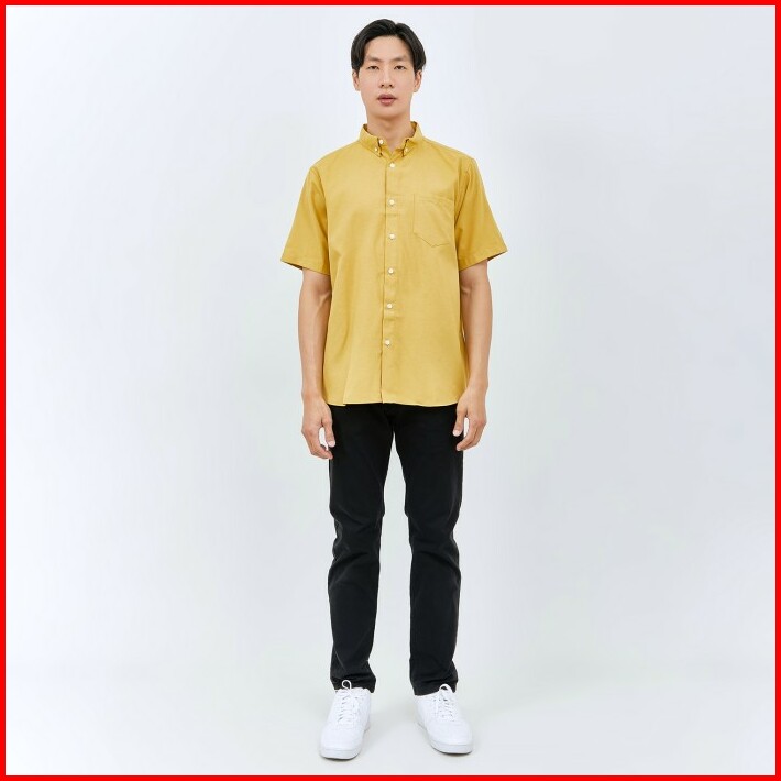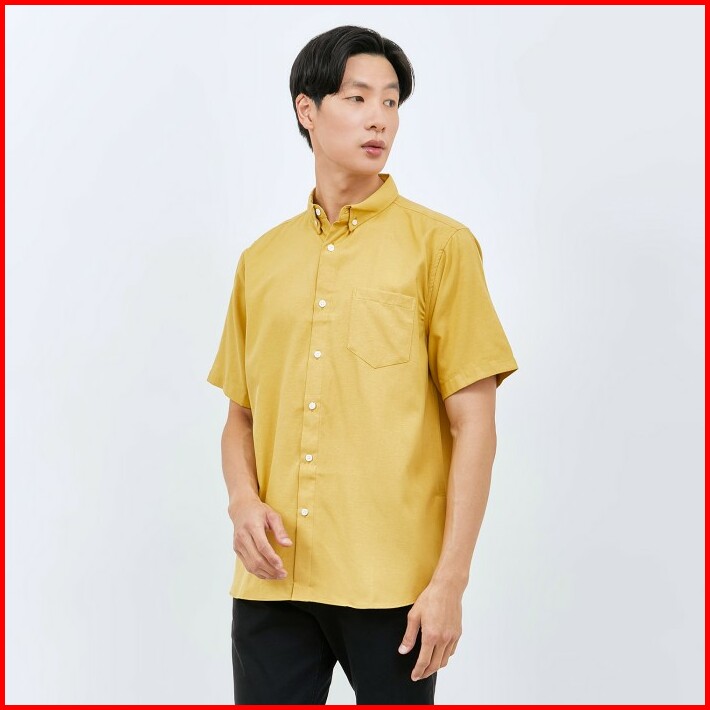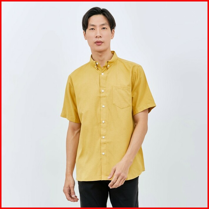 M231 Kemeja Pria Basic Polos Oxford Pendek Warna Kuning 1457n