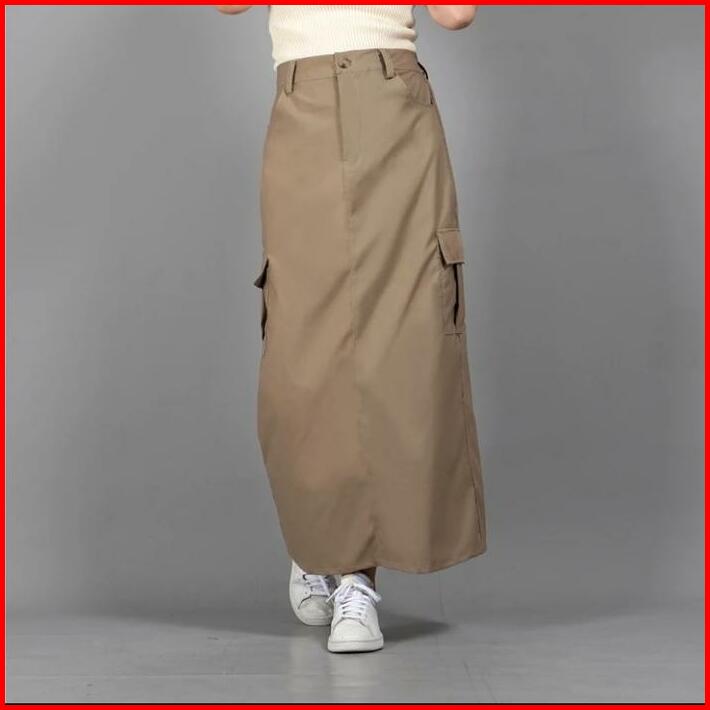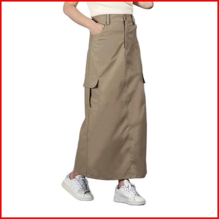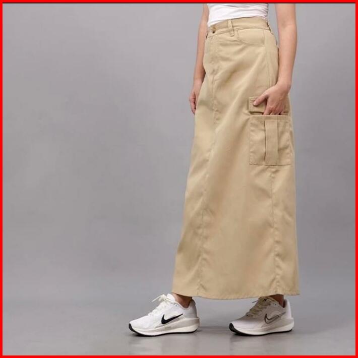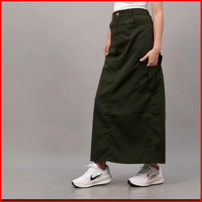 Rok Cargo Wanita Span Panjang Tebal Skirt Bawahan American Drill Standar Fit Hitam Kerja