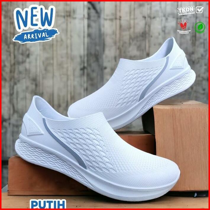 Tbs Sepatu Karet Pria Warna Putih Slipon Att Awp 777 Anti Air Flat