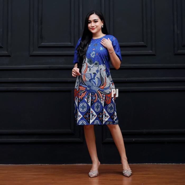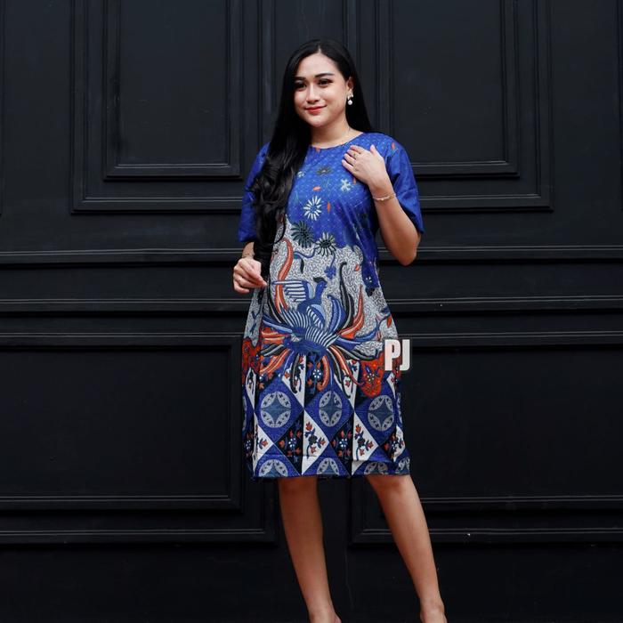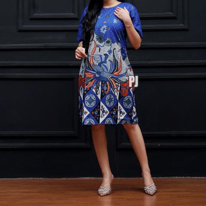 TANPA DP DRESS BATIK AYAM BIRU WANITA DEWASA M L XL XXL JUMBO KOPRI CASUAL BAJU PENDEK MIDI NYAMAN MOTIF MINI REMAJA NATAL DR AYAM BIRU M
