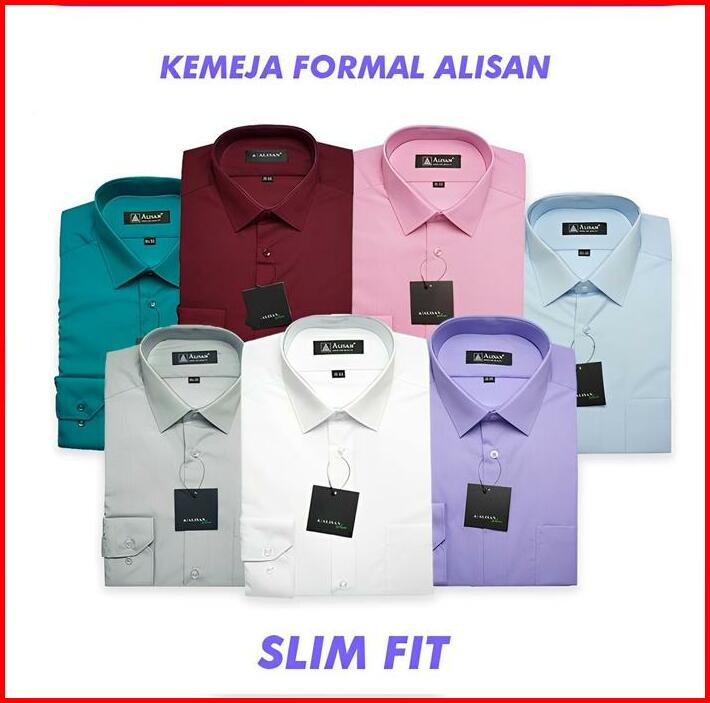 Kemeja Formal Polos Alisan Abu6 Abutua Pria Krah Berdasi Slimfit Lengan Panjang Premium