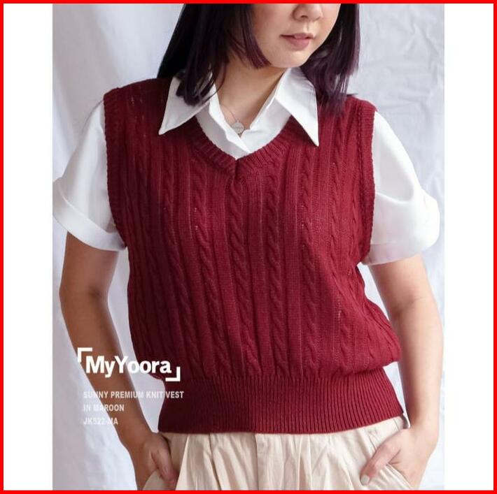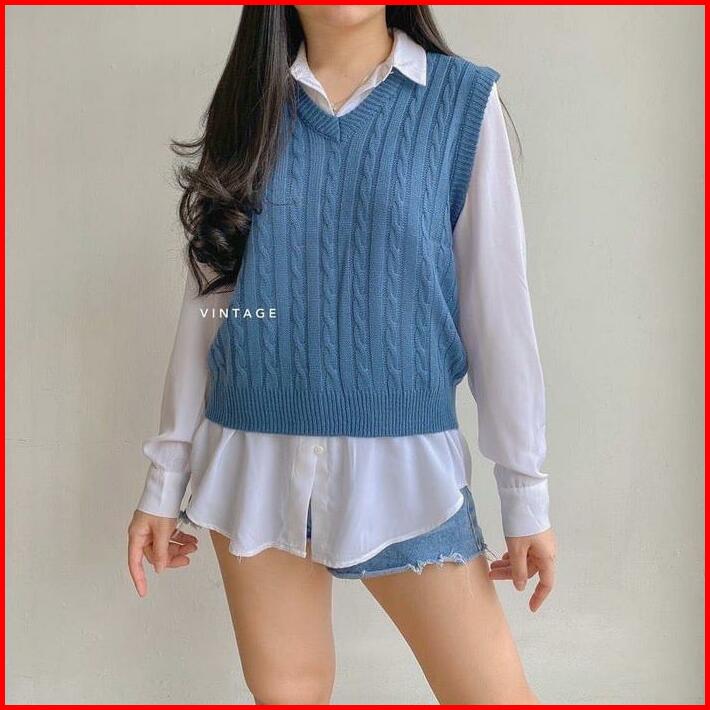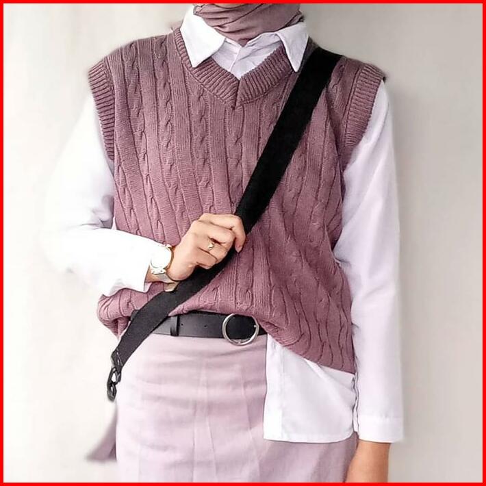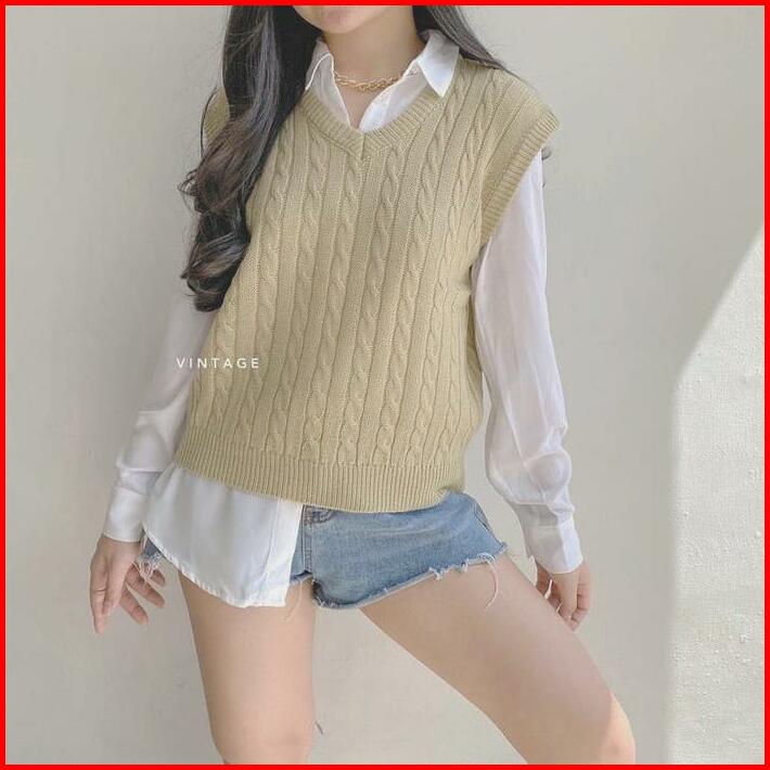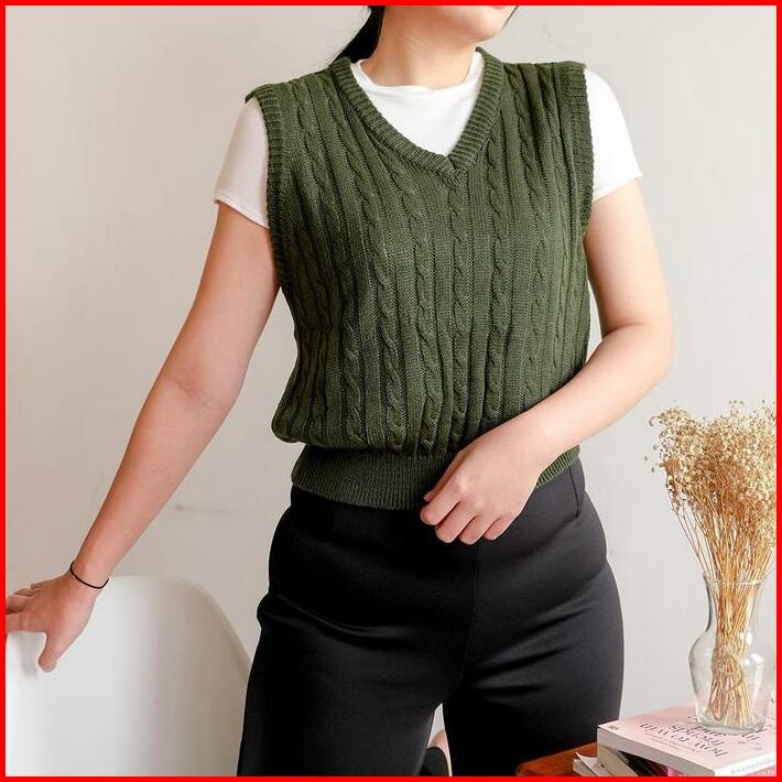 Vest Cable Rajut Vest Cable Premium Rajut Murah Outer Wanita Sweater Rajut Murah V-neck Santai Motif Tebal Atasan Top Ro