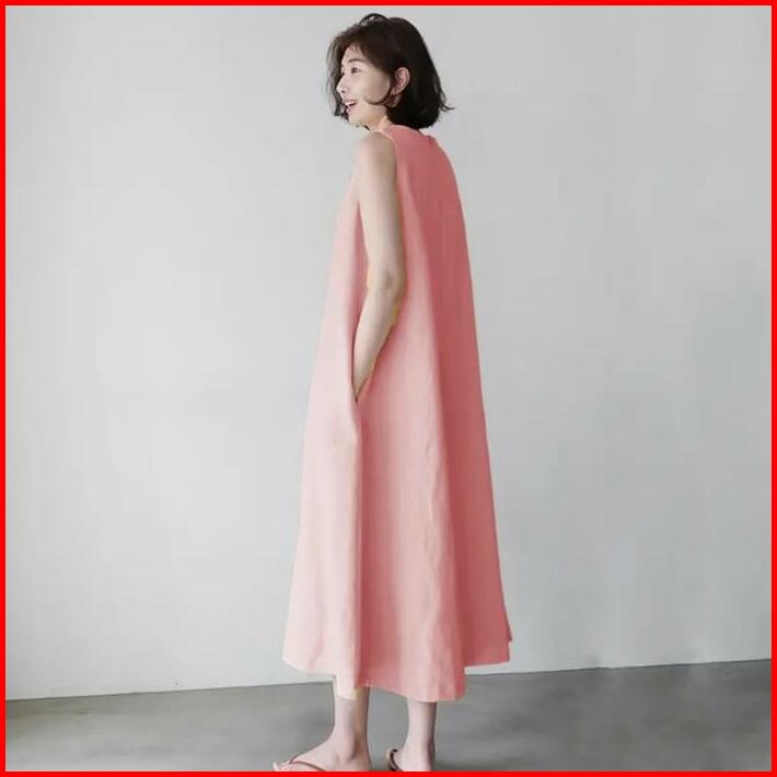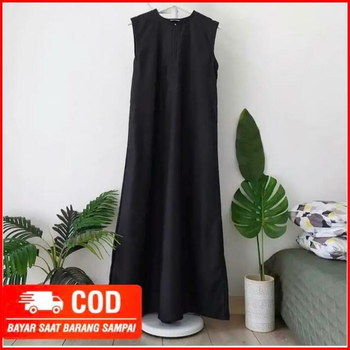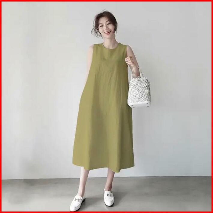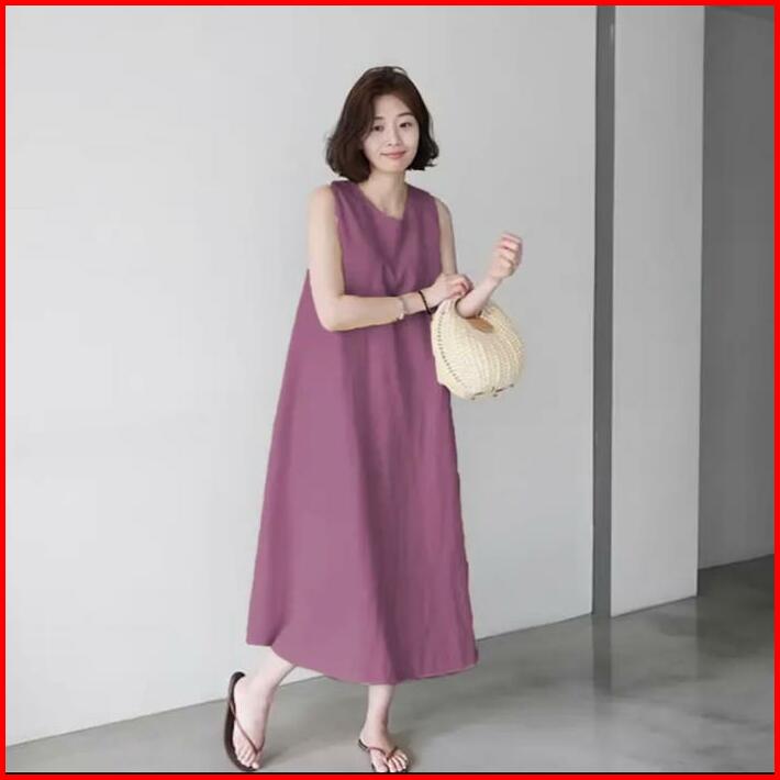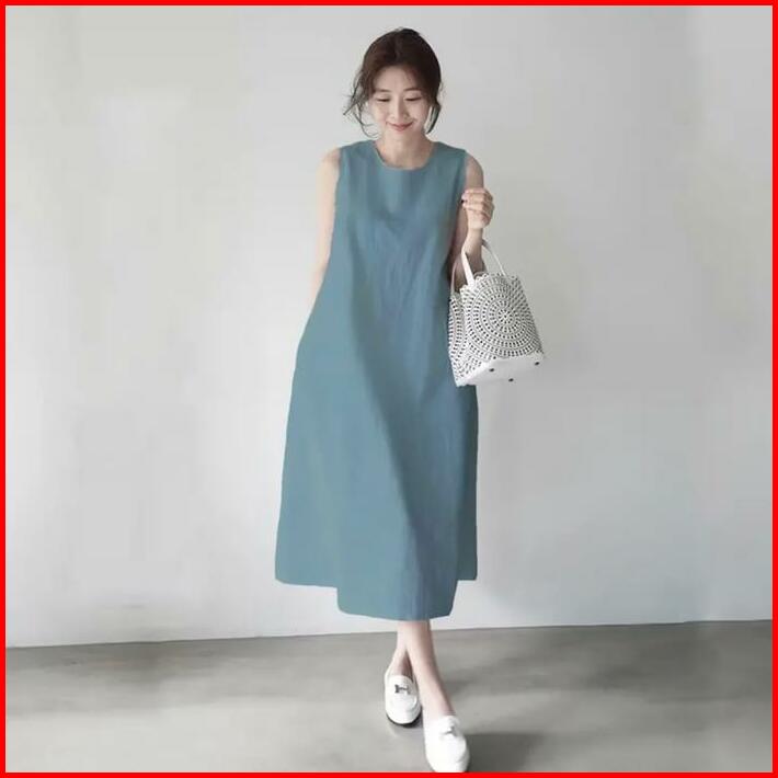 Jool Linen Sleeveless Iner Tanpa Lengan Dress Wanita Korean Style Polos