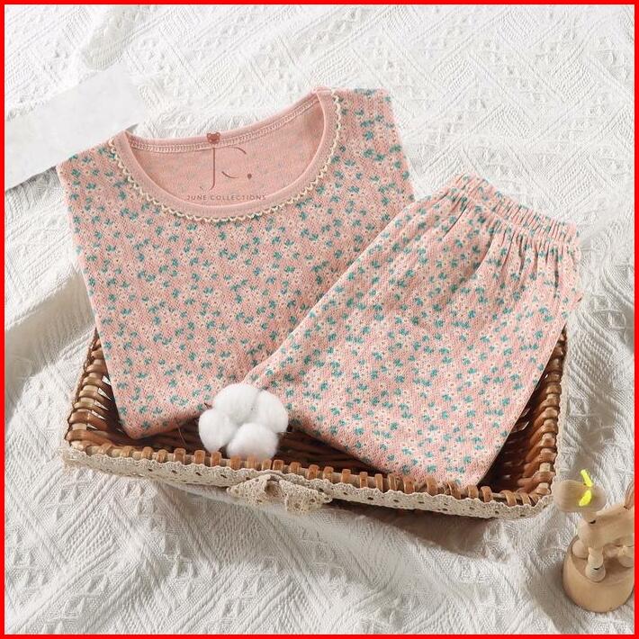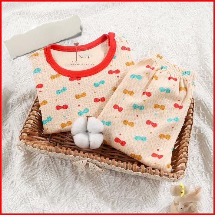 Junecollections Baju Tidur Anak Setelan Piyama Bayi Set Lengan Panjang Bahan Lembut Piyama Anak Motif Daun Pita Cherry B