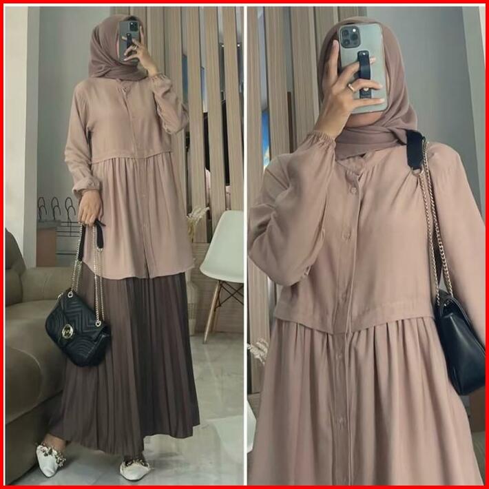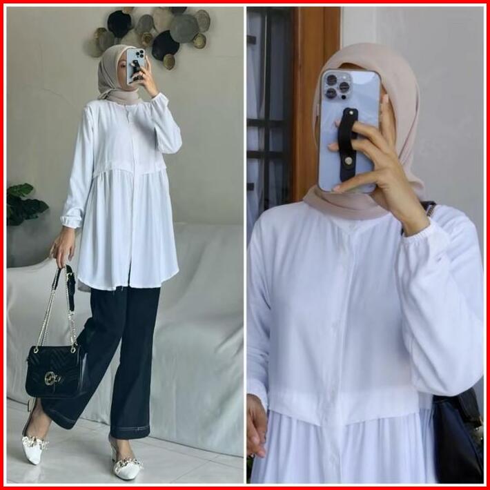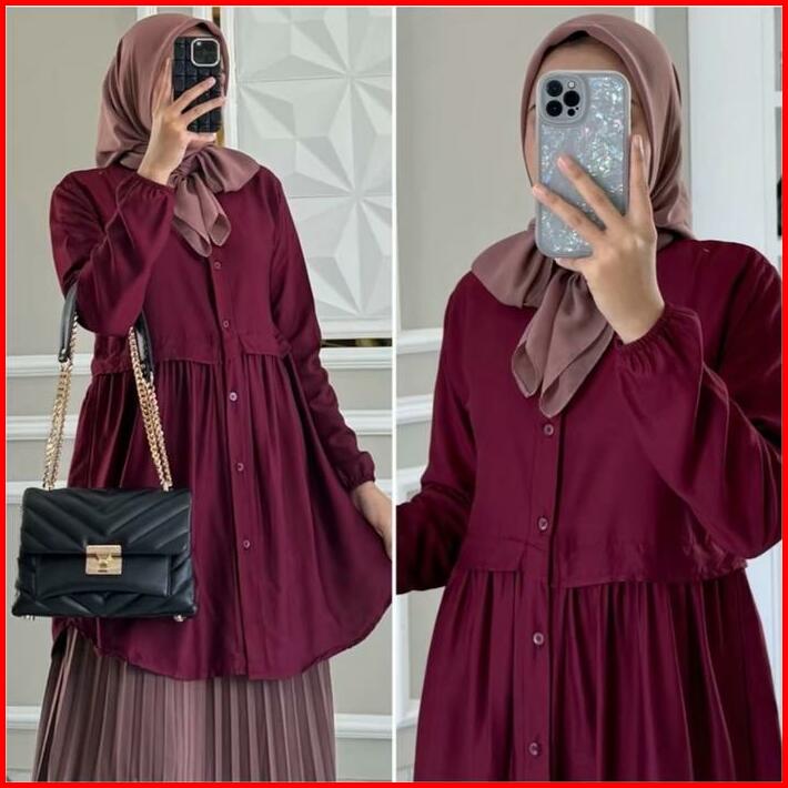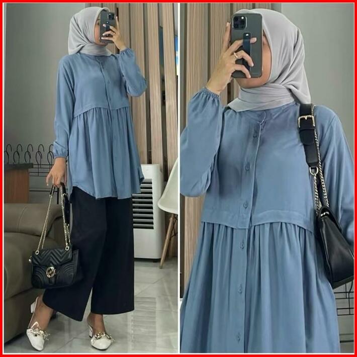 Atasan Semi Tunik Salsa Blouse Rayon Twill Wudhu Busui Friendly Dengan Detail Kancing