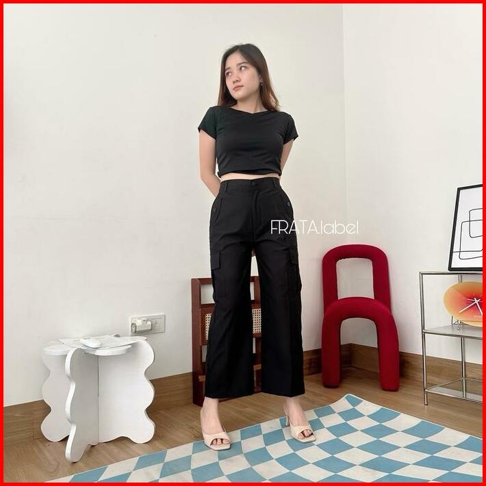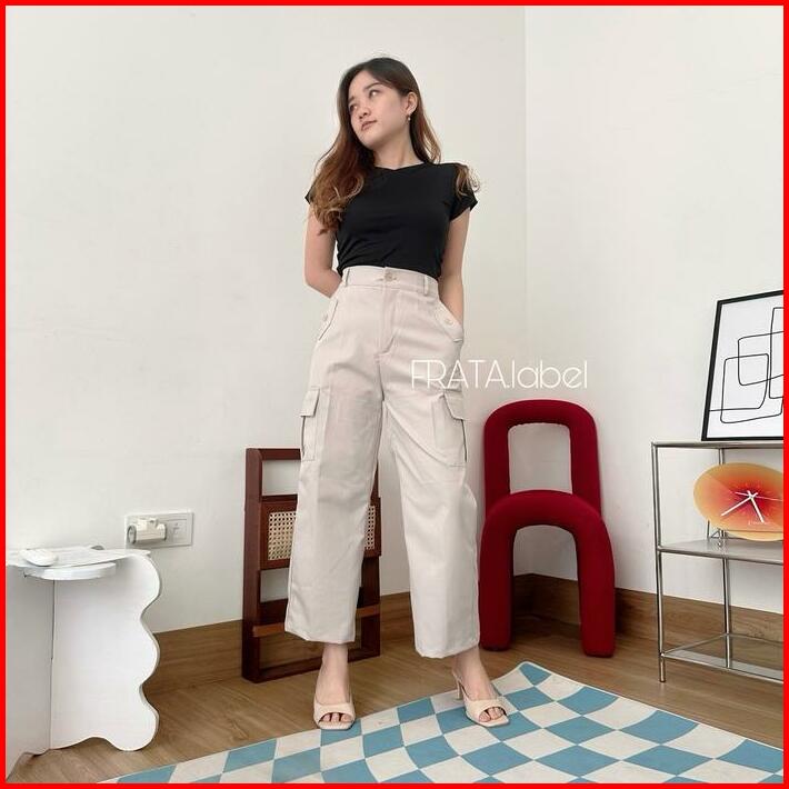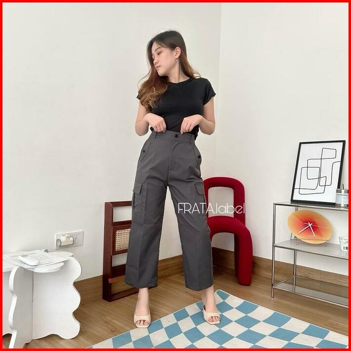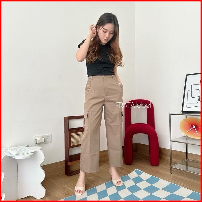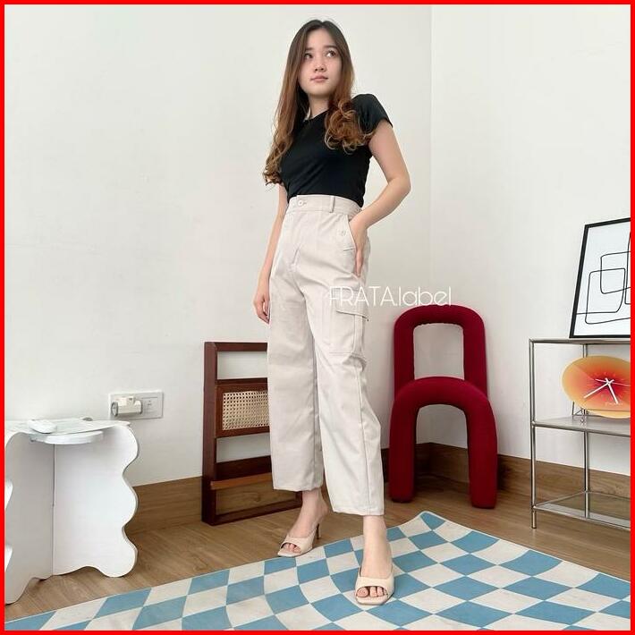 Frata Nancy Premium Kulot Ngatung Celana Kulot Ngatung Wanita Chinos Cargo Kantong