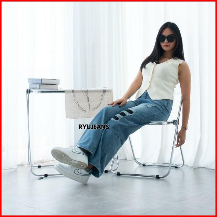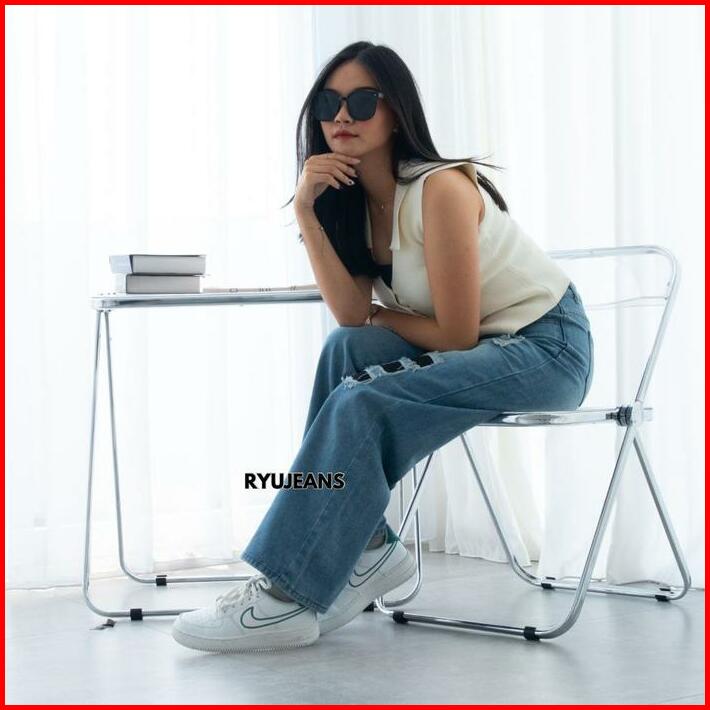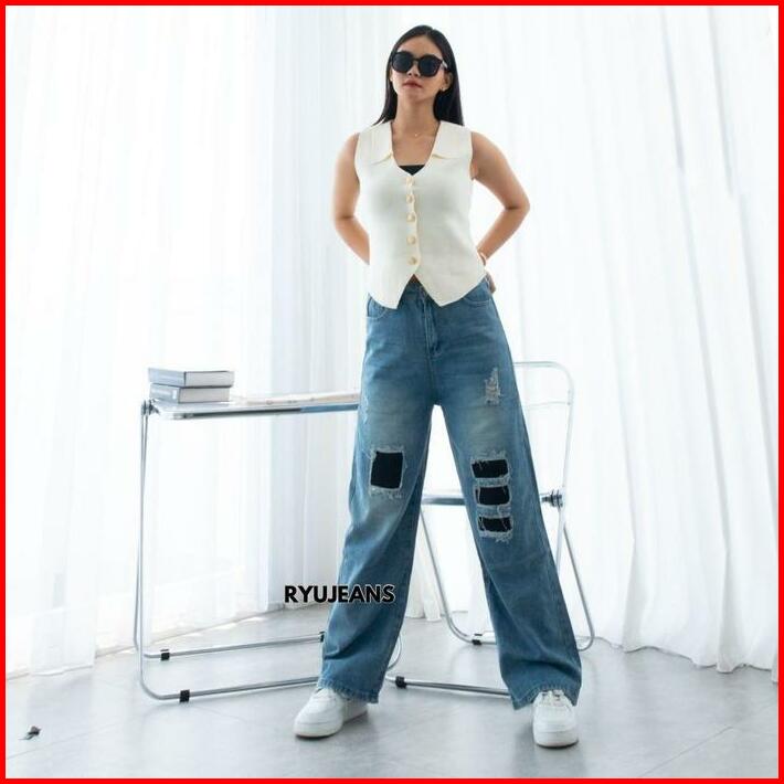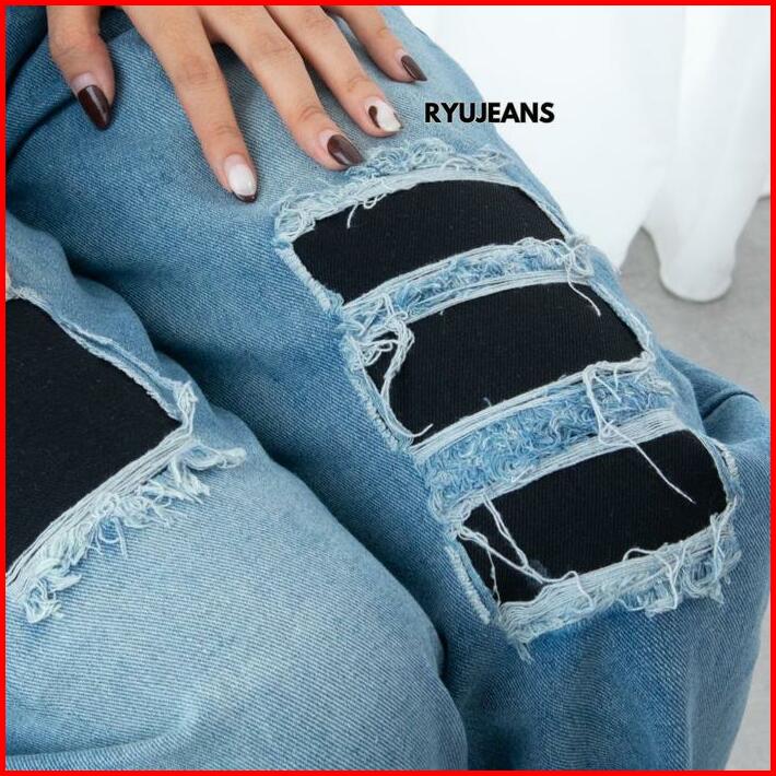Ryujeans X16 Celana Panjang Wanita Loose Ripped Non Tembus Jeans Highwaist Jeans