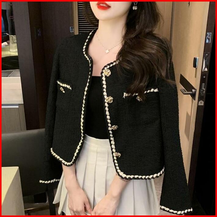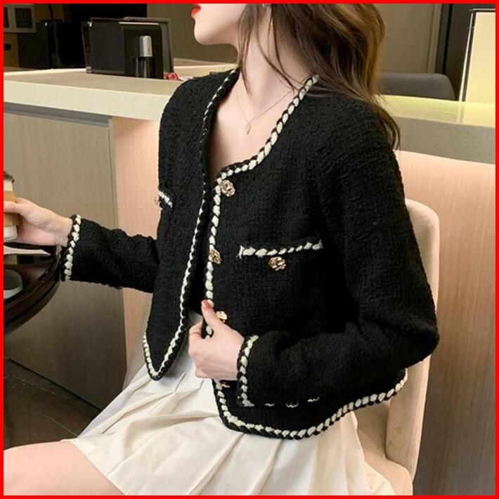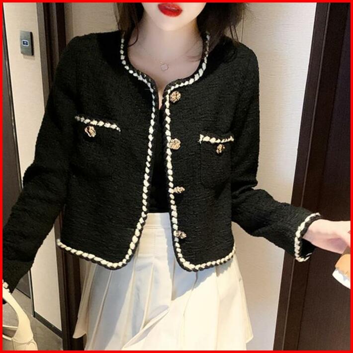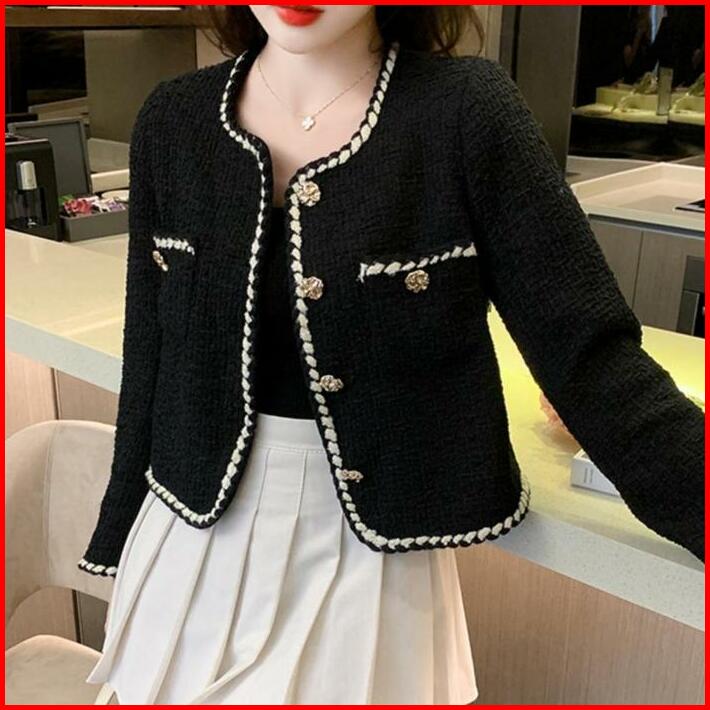 Blazer Simple Hitam Tweed Wanita Atasan Small High Quality Celebrity Cardigan Pink Korea Premium M595