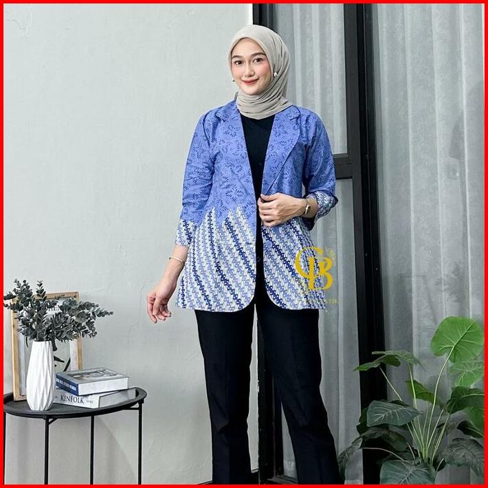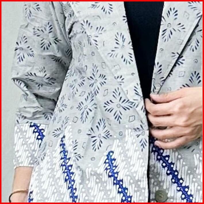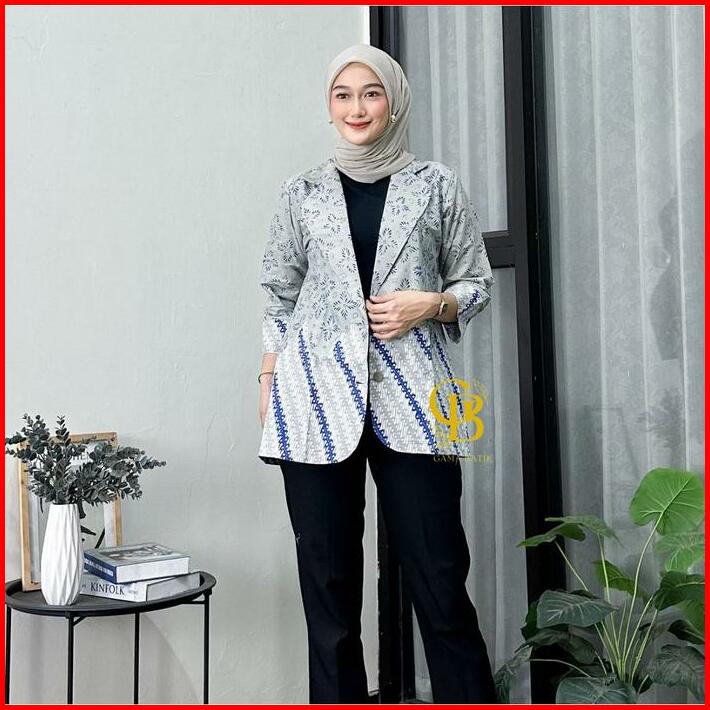 Blazer Batik Premium Atasan Baju Batik Wanita Modern Blazer Kantor Motif Liris Katun Kerja Formal