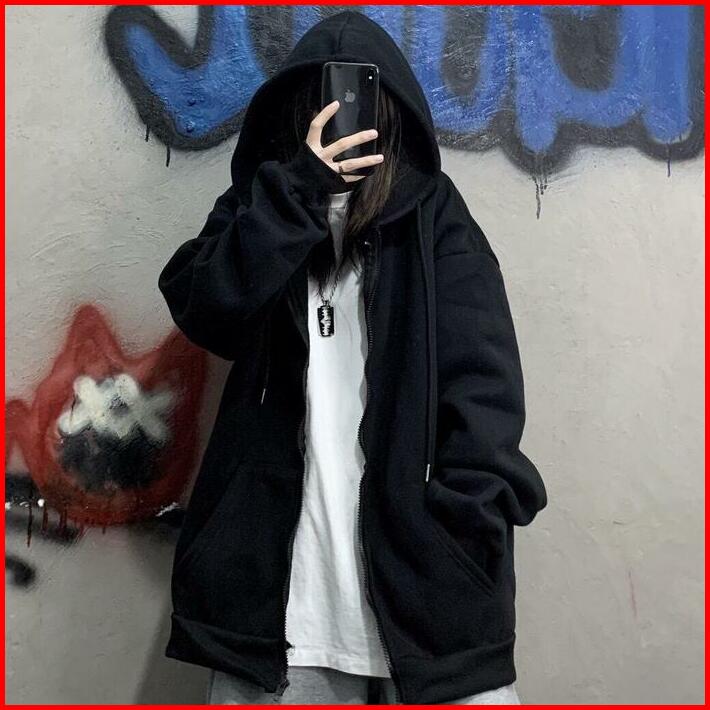Hoodie Zipper Sweater Wanita Pria Size Xxl Jumbo Hoodie Polos Unisex Jaket Hoodie Oversize Tebal Fleece Lembut Panjang N