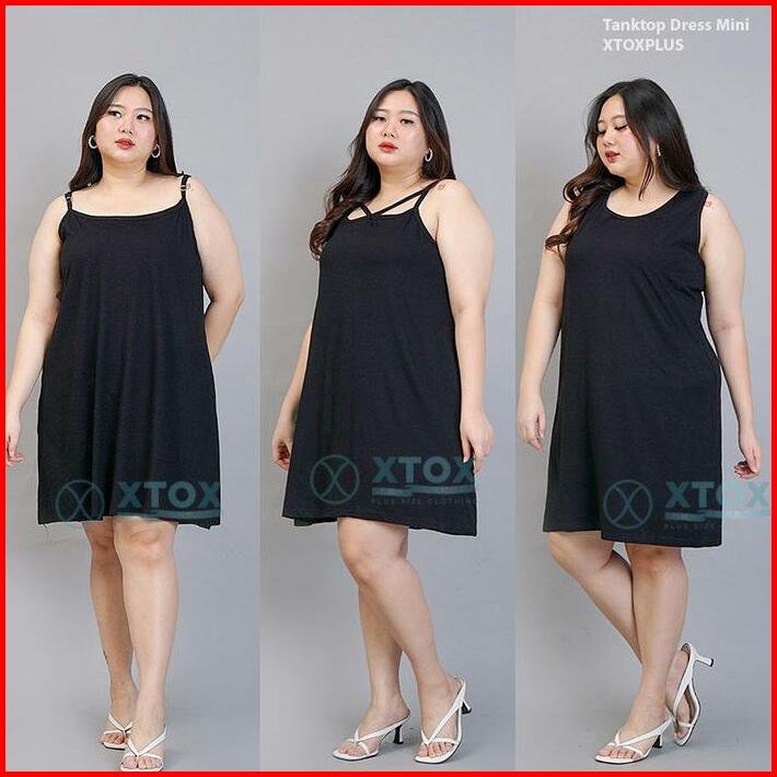 Baju Tanktop Dress Bigsize Jumbo Plus Size Casual Mini Stretch Wanita Rayon Pendek Terusan