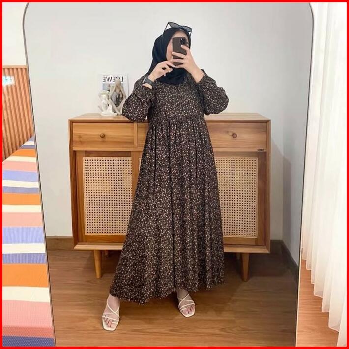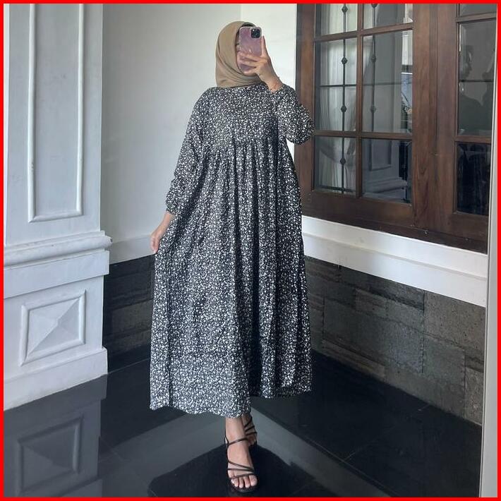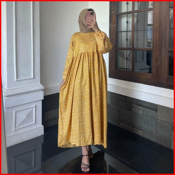 Midi Dress Rayon Premium Jumbo Dress Busui Frienly Midi Dress Kanaya Motif Bunga Lengan Balon Daster Long Midi Dress Pan
