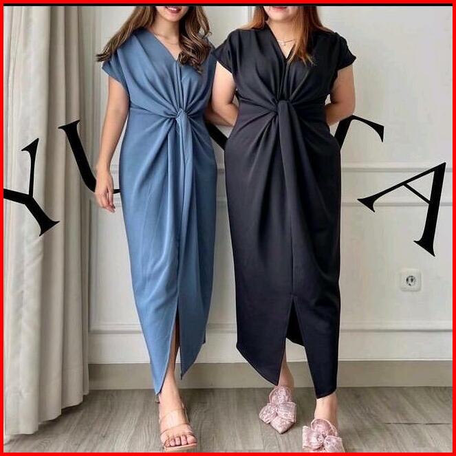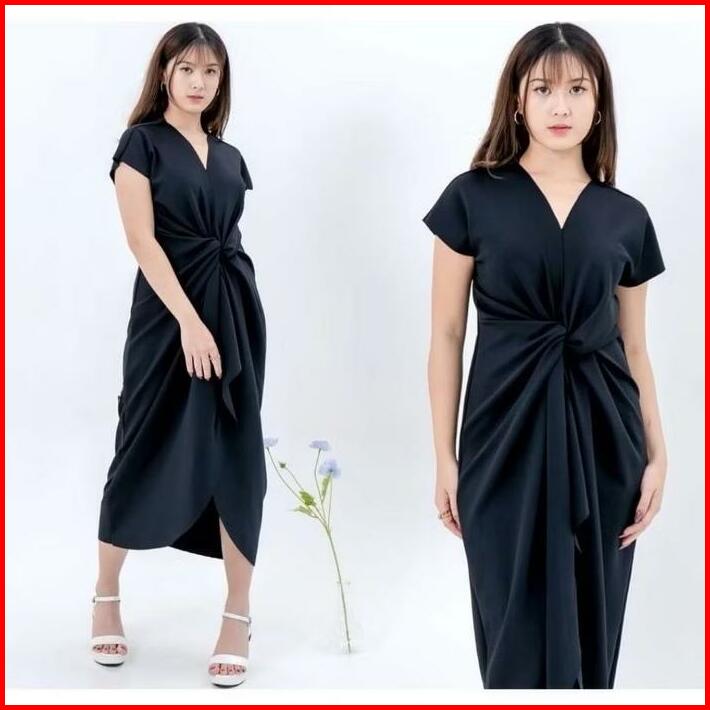 Dress Yuanita Scuba Terbaru Viral Casual Pesta Nyaman Wanita Formal Panjang Hitam Gaun