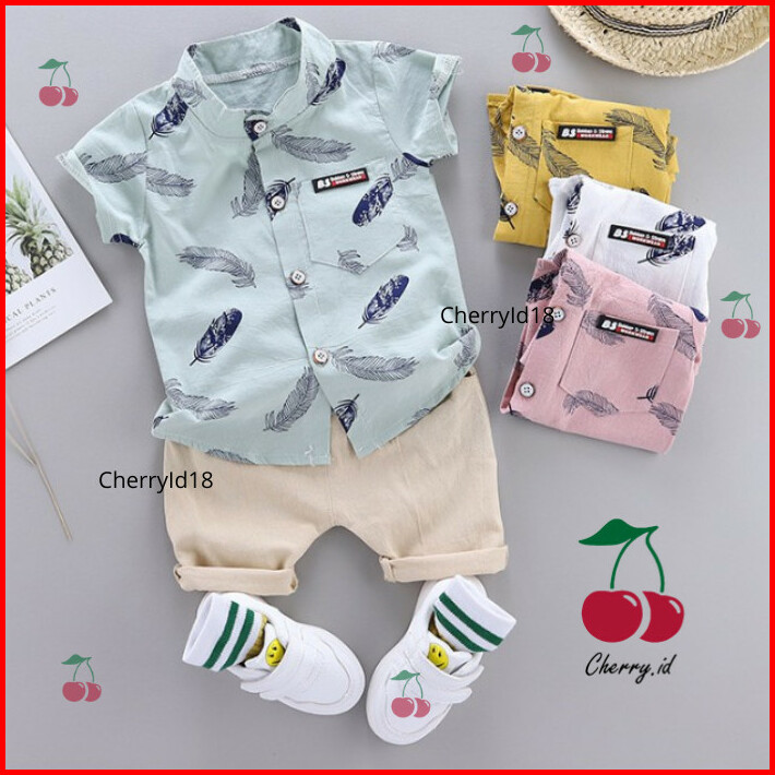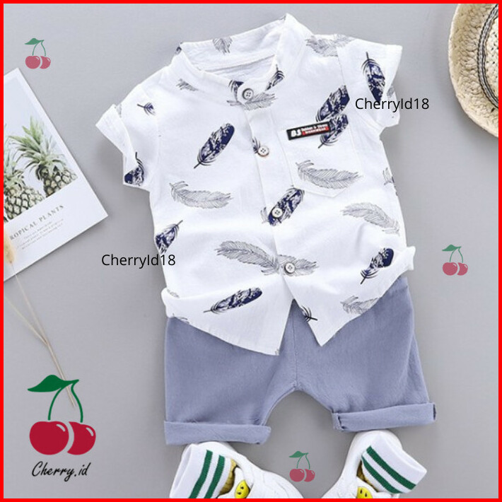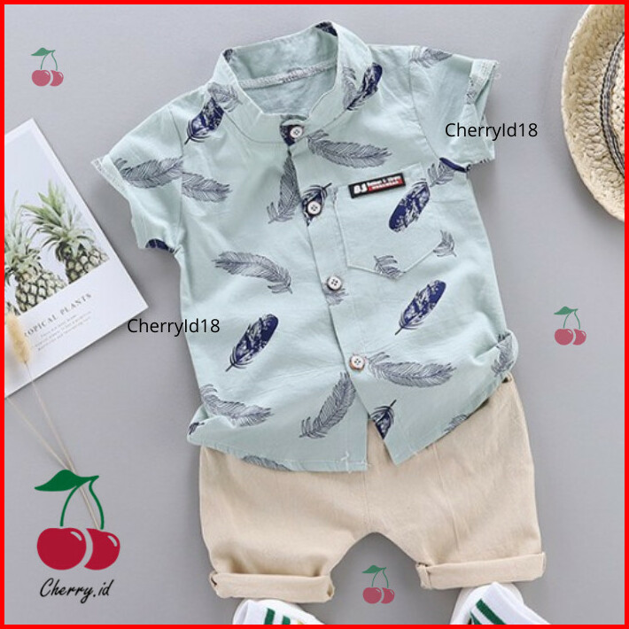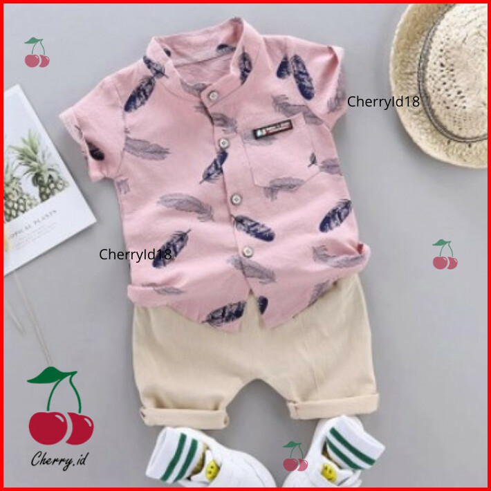 Setelan Kemeja Bayi Anak Import Kemeja Anak Cowok Motif Bulu Kb12