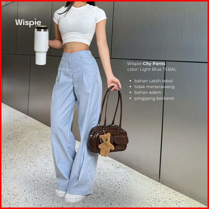 Wispie City Pants Celana Tidur Tipis Panjang Wanita Kantor Kuliah Motif Garis Kulot Pinstripe Karet Lembut Loose