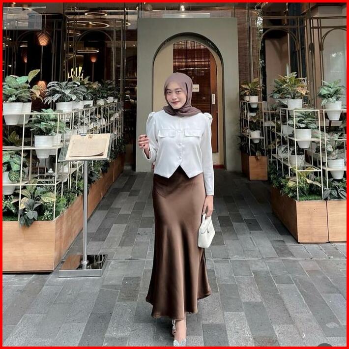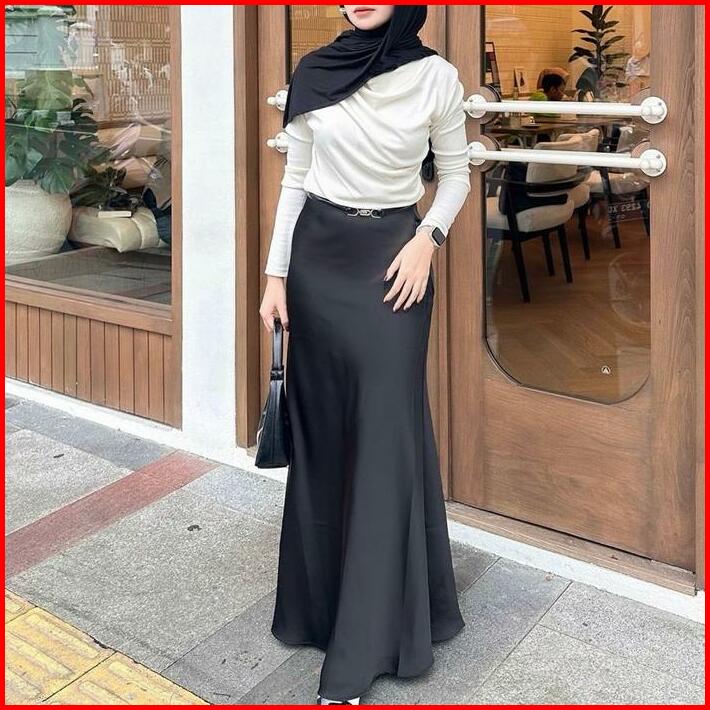 Rok Satin Silk A Line Mermaid Skirt Satin Wanita Panjang