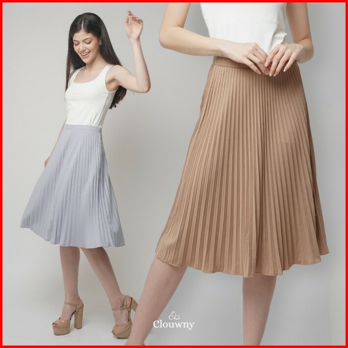 Vamos Midi Pleat Skirt Premium Plisket Pleats Clouwny Rok Plisket