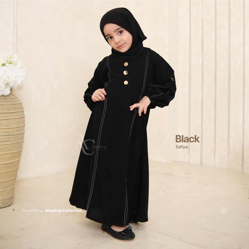 Alaydrus Collection Safiya Abaya kids Hitam Turkey Gamis Syari Muslimah Bahan Jetblack Hitam Kombinasi Renda