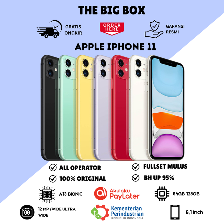 APPLE IPHONE 11 IBOX SECOND LIKE NEW 64GB/128GB ASLI 100% MULUS NORMAL FULLSET KONDISI PERFECT BH 95%+