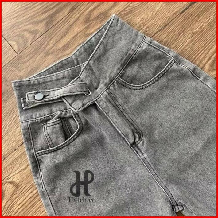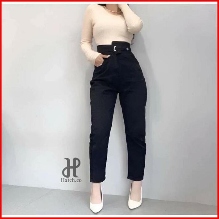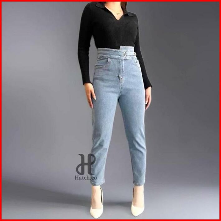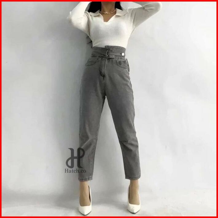 Celana Jeans Boyfriend Wanita Highwaist Model Tali Kancing Depan