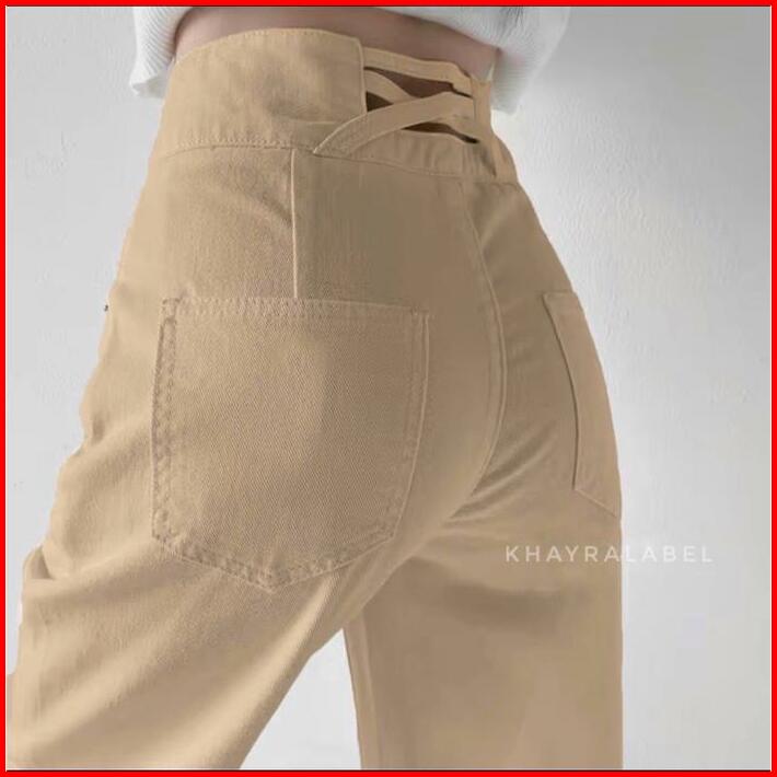 Khayralabel Celana Highwaist Jeans Panjang Wanita Kancing Dua J23 Slim-fitting