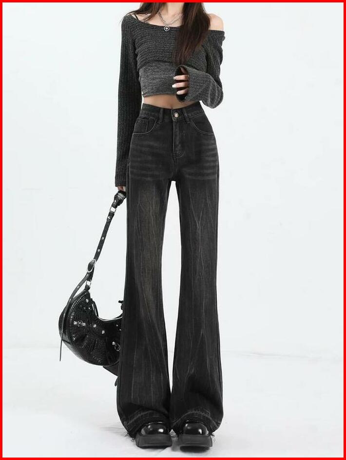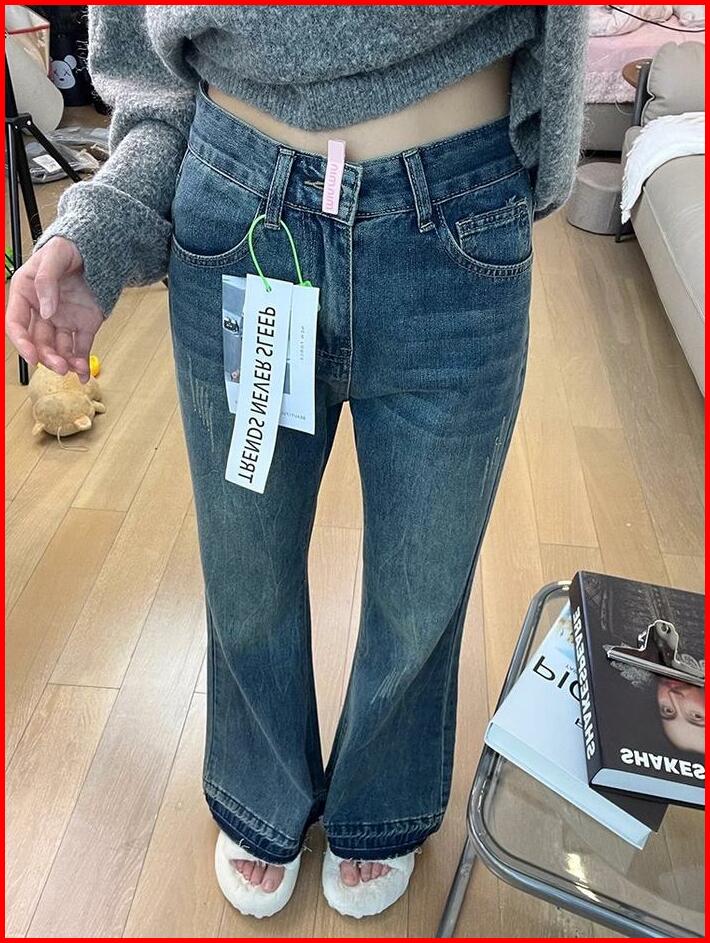 Korea Highwaist Cutbray Jeans Rawis Celana Jeans Wanita