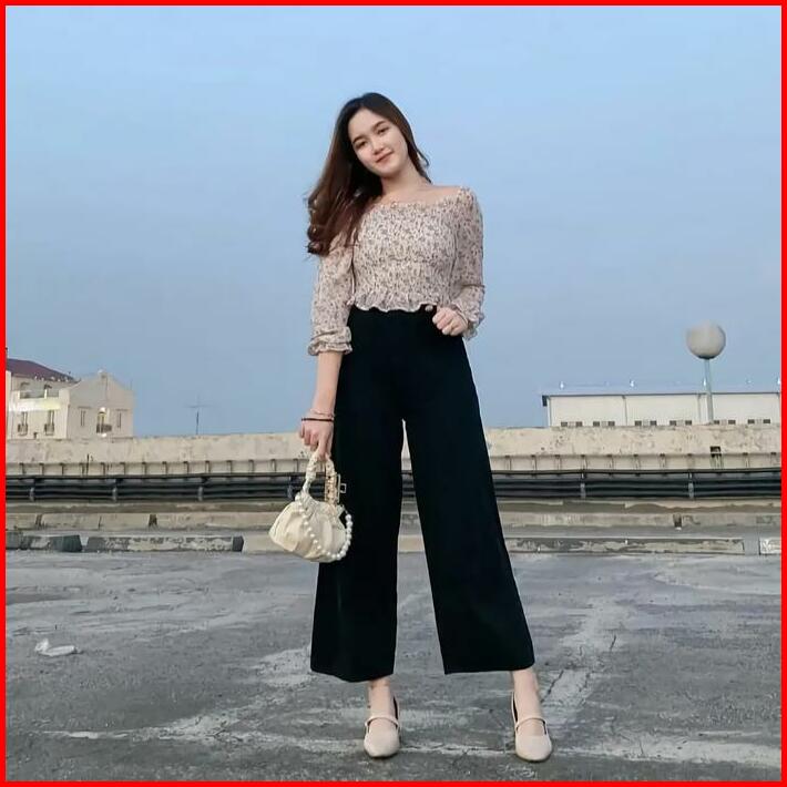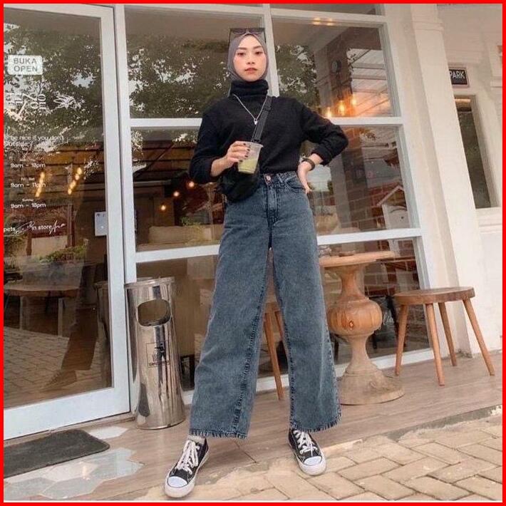Mozza Cullote Jeans Highwaist Celana Kulot Deonik Wanita Warna Mocca Snow Terbaru Model Korean Celana Panjang Karet Deni