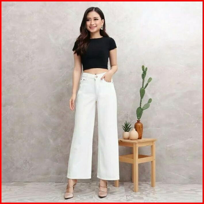 Celana Jeans Putih Kulot Highwaist Wanita Size 27-34