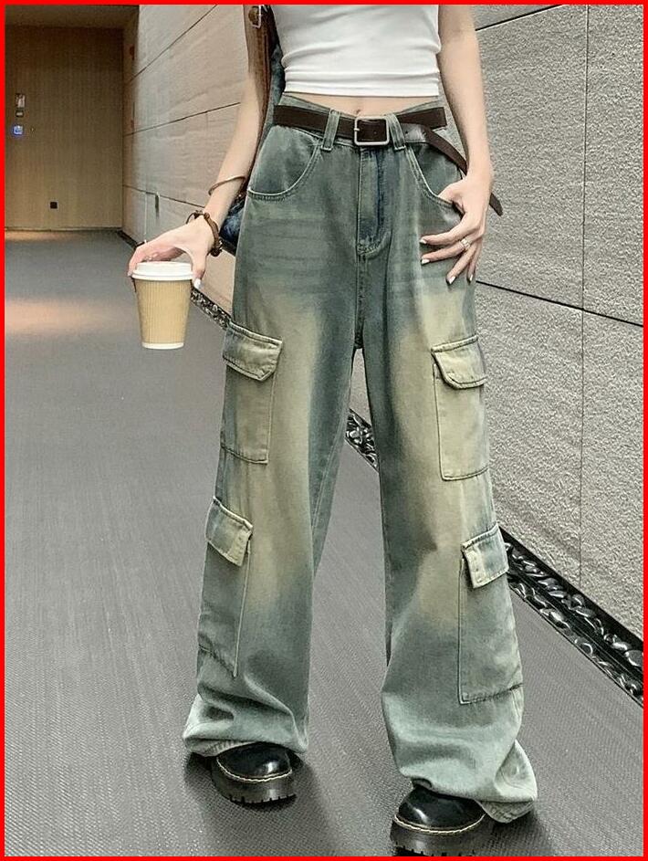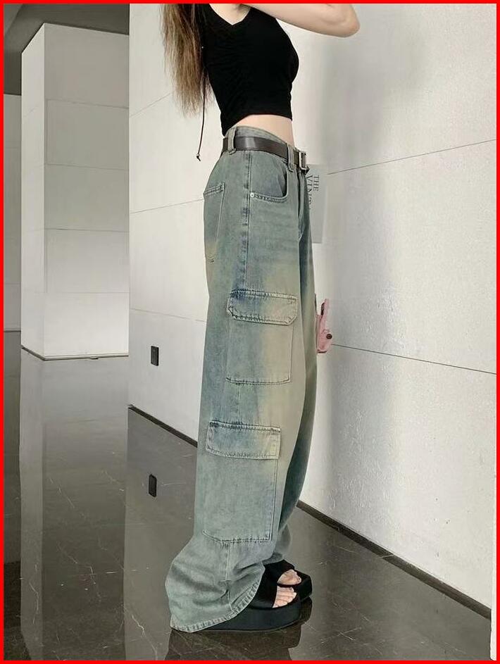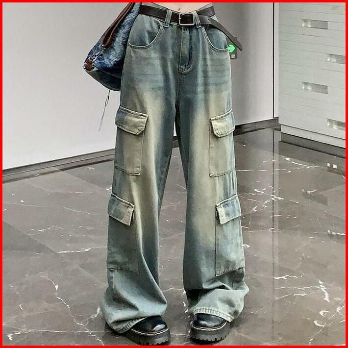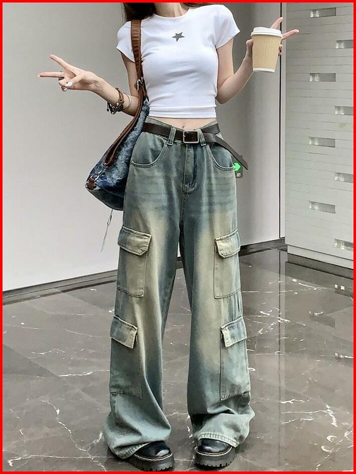 Jomelinjeans - Jns-301 Jeans Cargo Wanita Highwaist Celana Panjang Cargo Denim Santai Loose Kancing