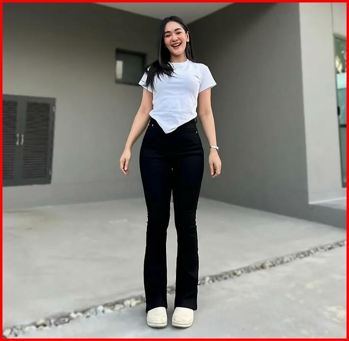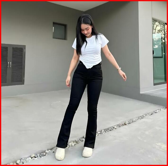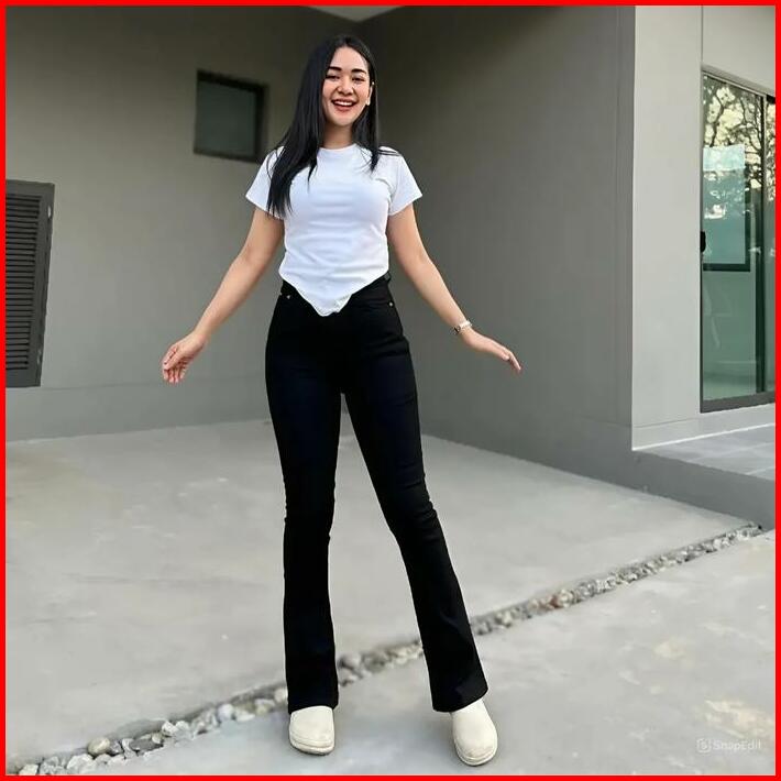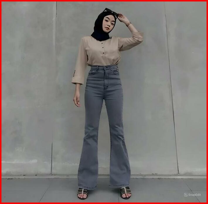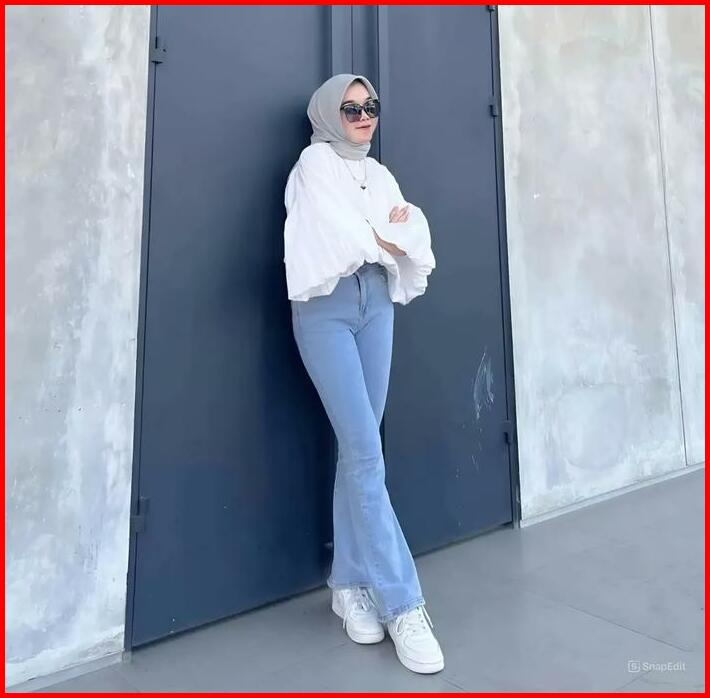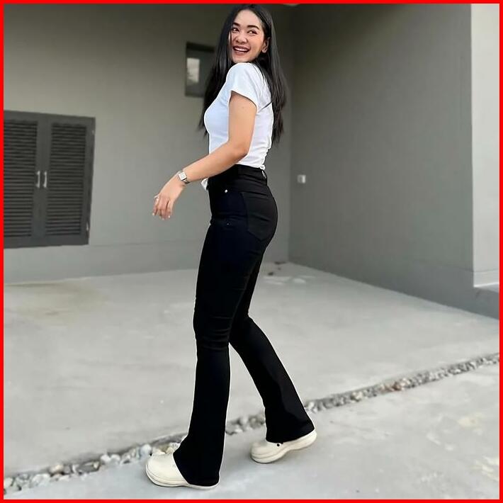 Celana Cutbray Jeans Denim Panjang Wanita Model Lily Hitam Highwaist Cutbray Dewasa Melar Light Navy Nyaman Kaki
