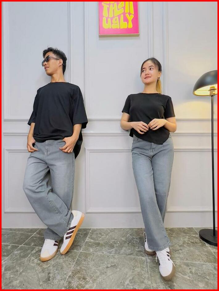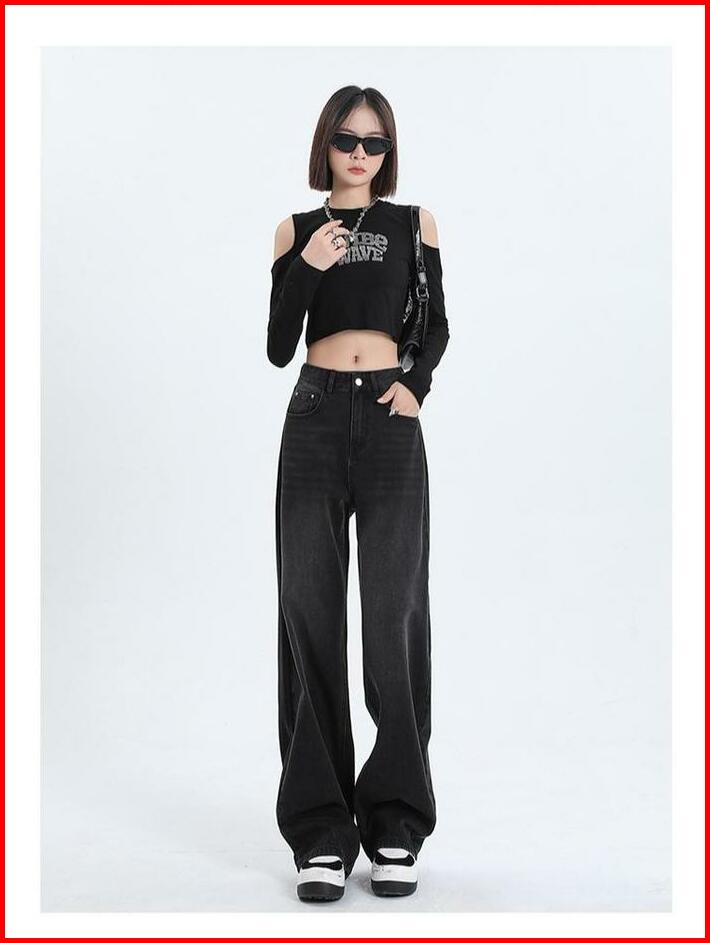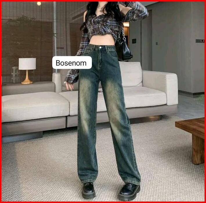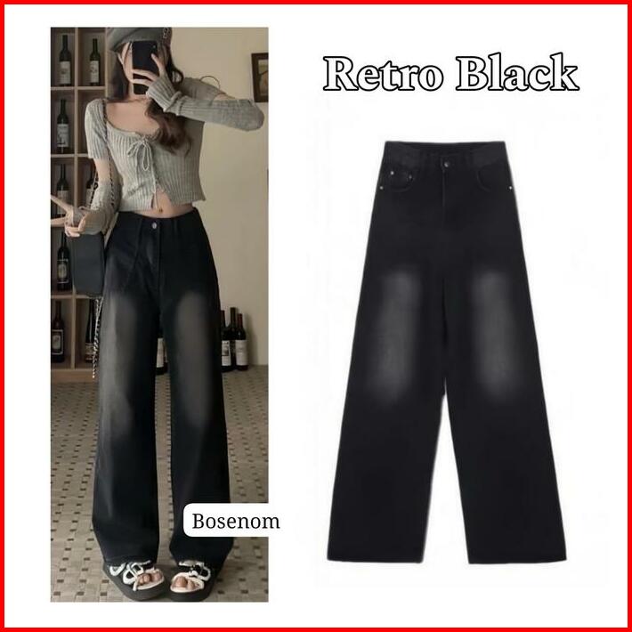 Unisex Celana Jeans Biru Retro Highwaist Straight Celana Wide Leg Pants Loose Wanita Panjang Boyfriend Hitam Korean Terb