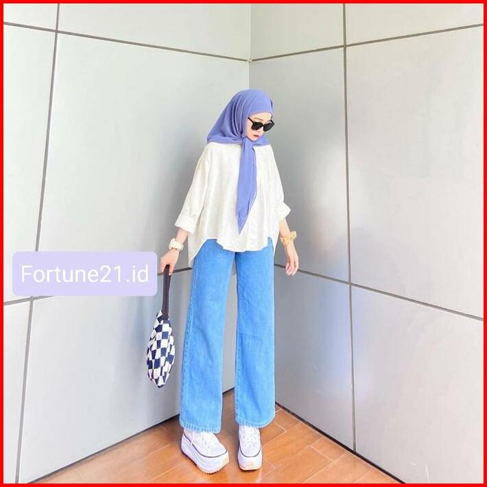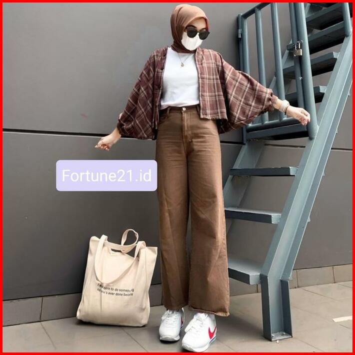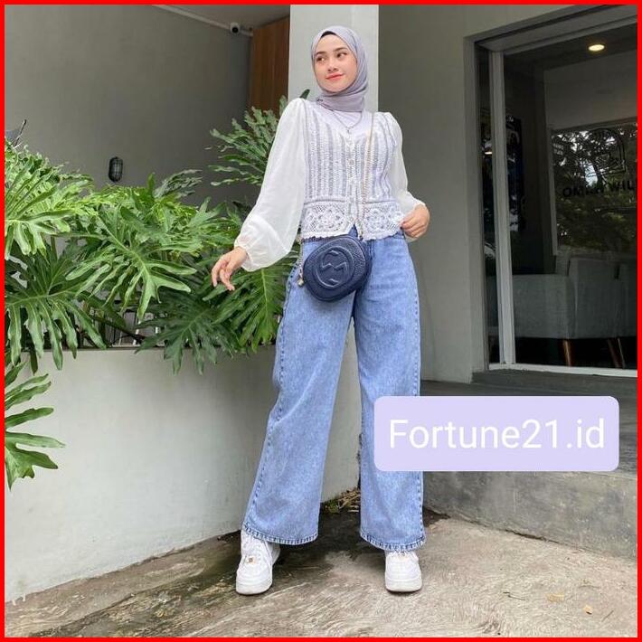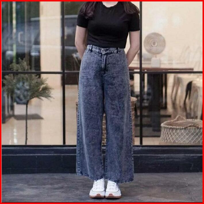 Best Seller Celana Kulot Jeans Snow Highwaist Wanita Premium Warna Denim Kancing