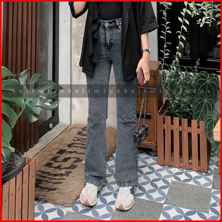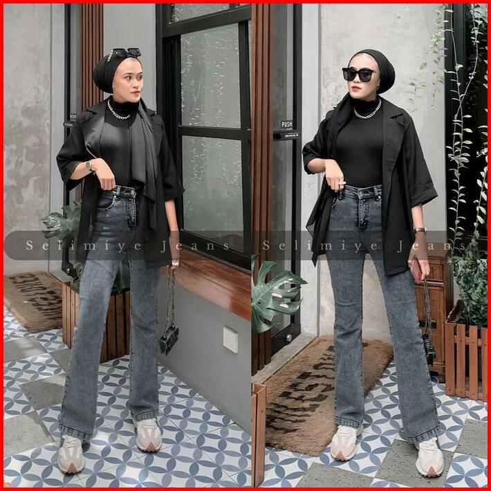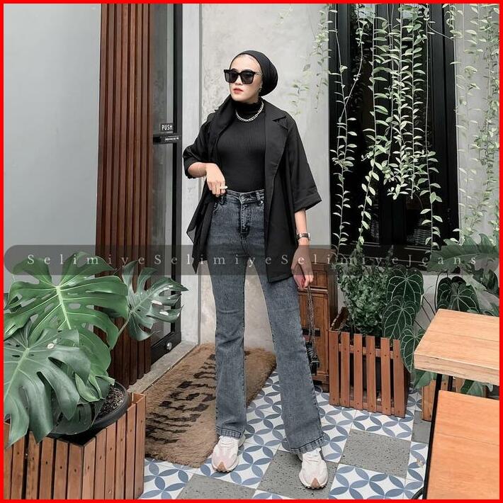 Highwaist Celana Jeans Wanita Cutbray Snow Black-melar Ter Viral