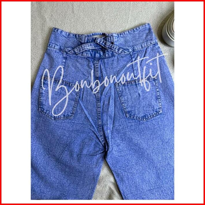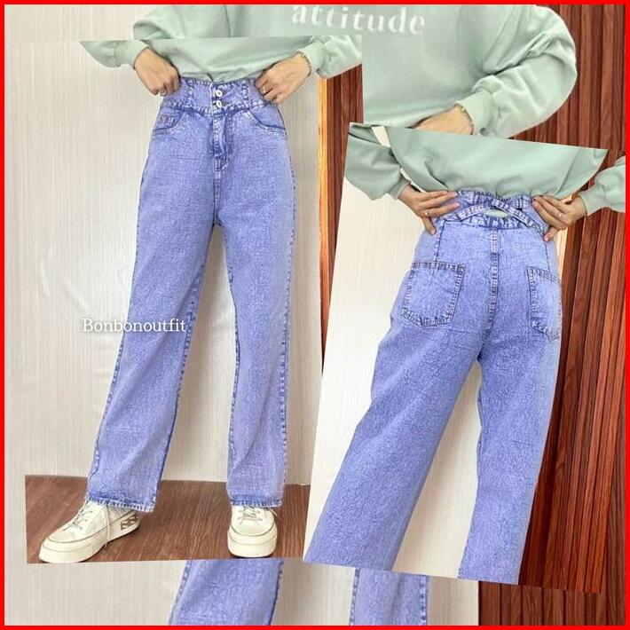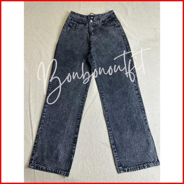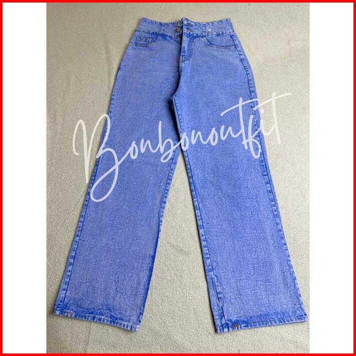 Celana Kulot Jeans Loose Wanita Panjang Highwaist Silang Belakang Premium Variasi 2 Kancing Depan