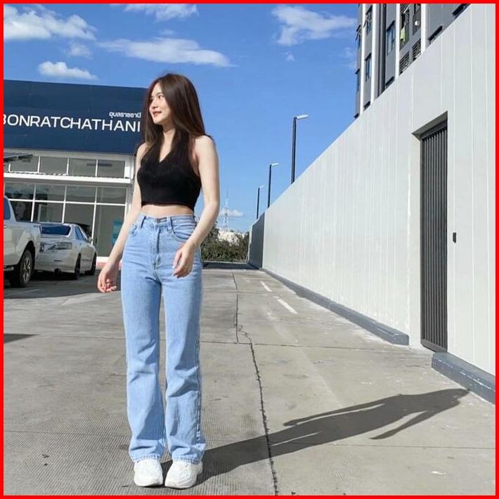 Highwaist Kulot Jeans Wanita Loose Polos Bawahan Celana Panjang Hitam Dewasa